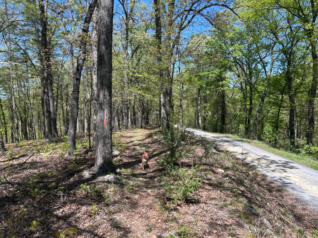 Today I drove to the County Line Trail head, on the left side of Waites Run Road, just after the bridge crossing. I backed into the trail head/fire road to turn around, then crossed back over the bridge and parked on my right. There is room for 2 or three rigs right here and another side pullover just ahead also on the right. This is directly across from the Pond Run Trail which is on the right as you drive in, or left after you turn around to park.