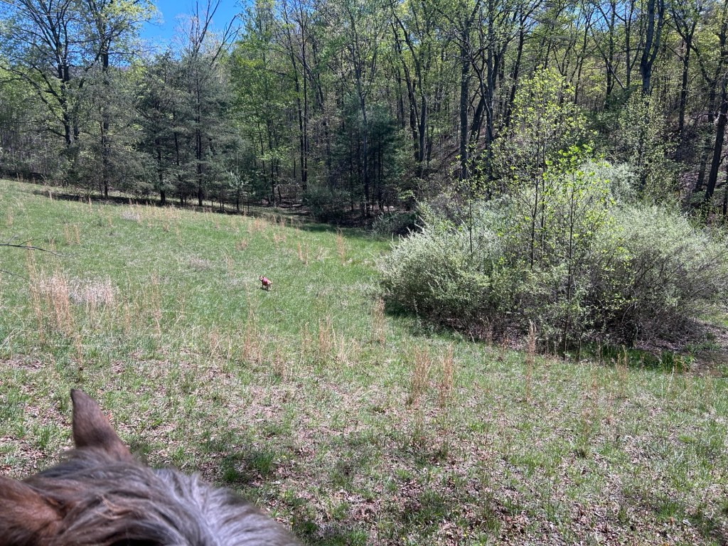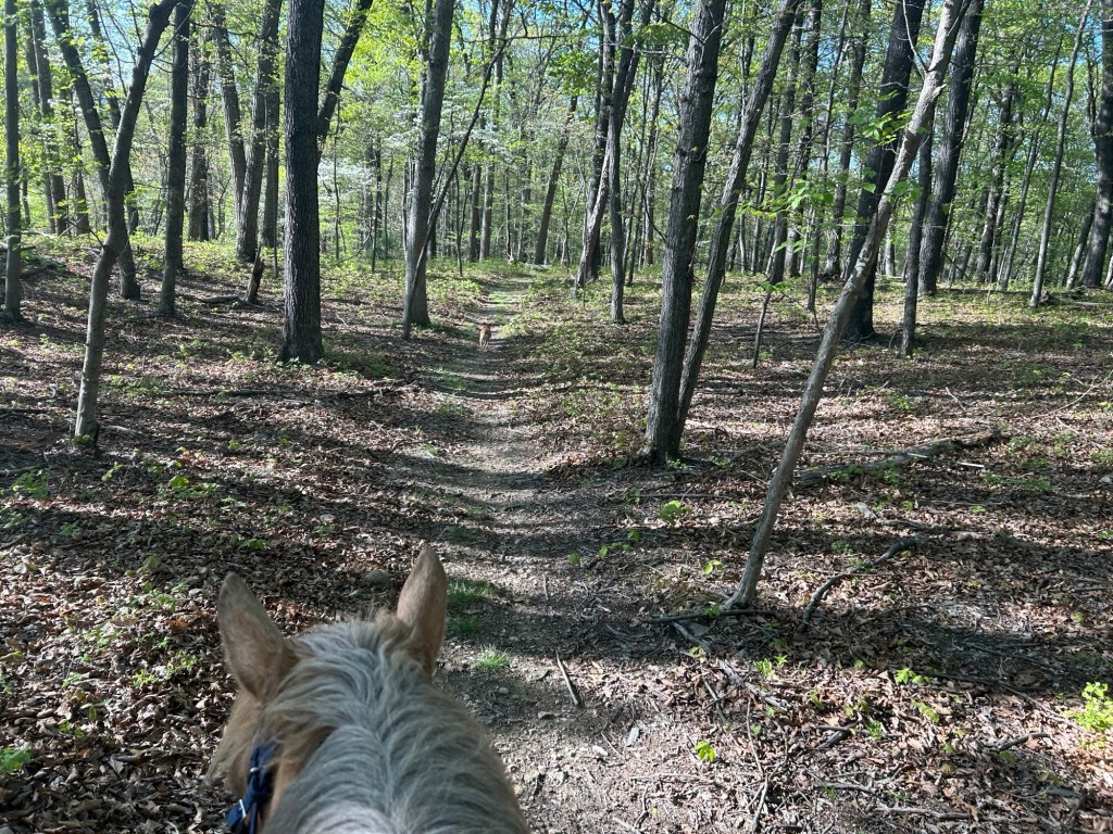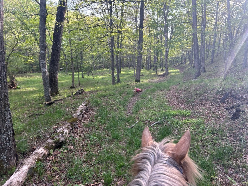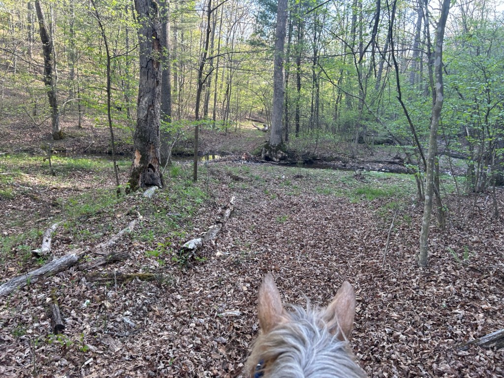 At about the 2.5mile point there was a large tree down across the trail. I did not see an obvious way around it. If I took Simon’s saddle off, he would have just fit under the higher end of the tree. But it was so buggy and other directions I could explore so I decided to turn around.