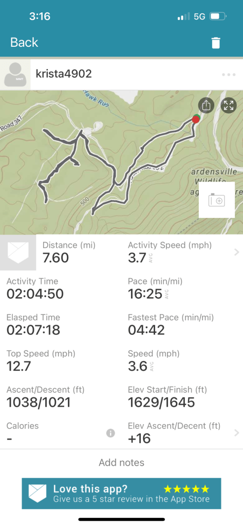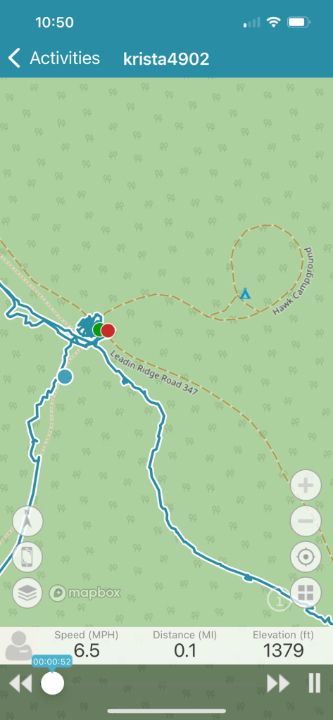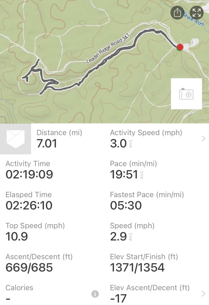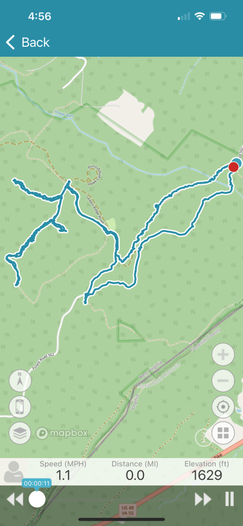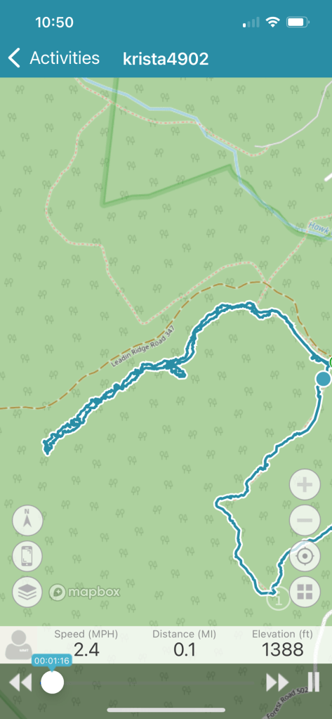 I did some more exploring from the main camp circle in Hawk Recreational Area. This includes Blue blaze, Creek Trail, Harness Trail and yellow blaze, Lost Hunter Trail.
