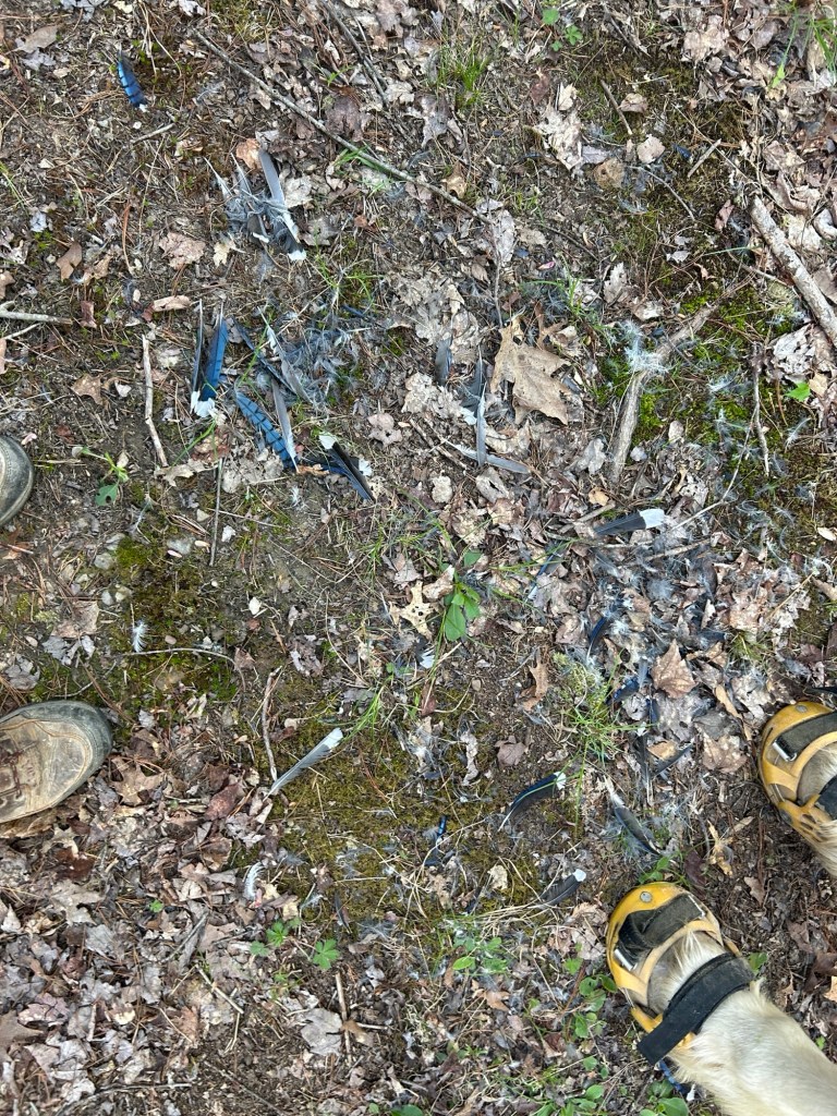 After a bit the trail widens, crosses some other trails, and is sort of moss covered. I kept baring left, and down. I did see some fresh and old horse tracks and poo and even found a horse shoe, which I hung in the closest tree.