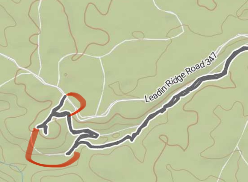 The other track is less dominate and in heavy leaf litter. It bares left. I turned around to head back and saw a sign directing the trail.