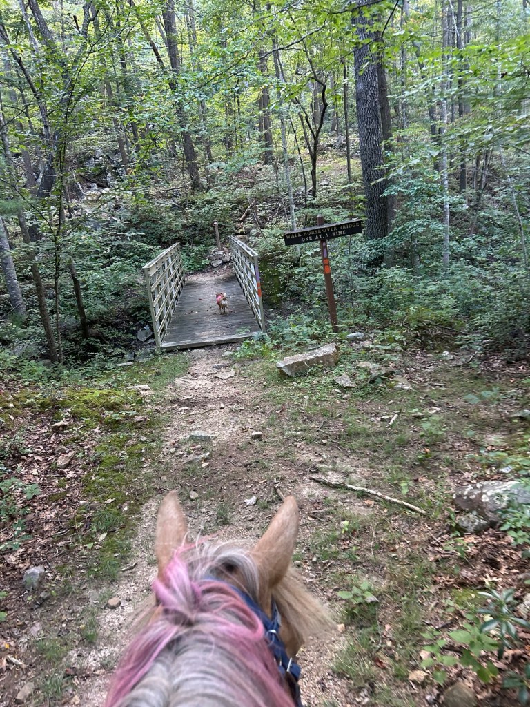 Just at the end of the rock outcropping was a creek, and a bridge. The same bridge Carol Ann and I passed a few weeks ago when riding the loop out from Bucktail parking off Trout Run Road.