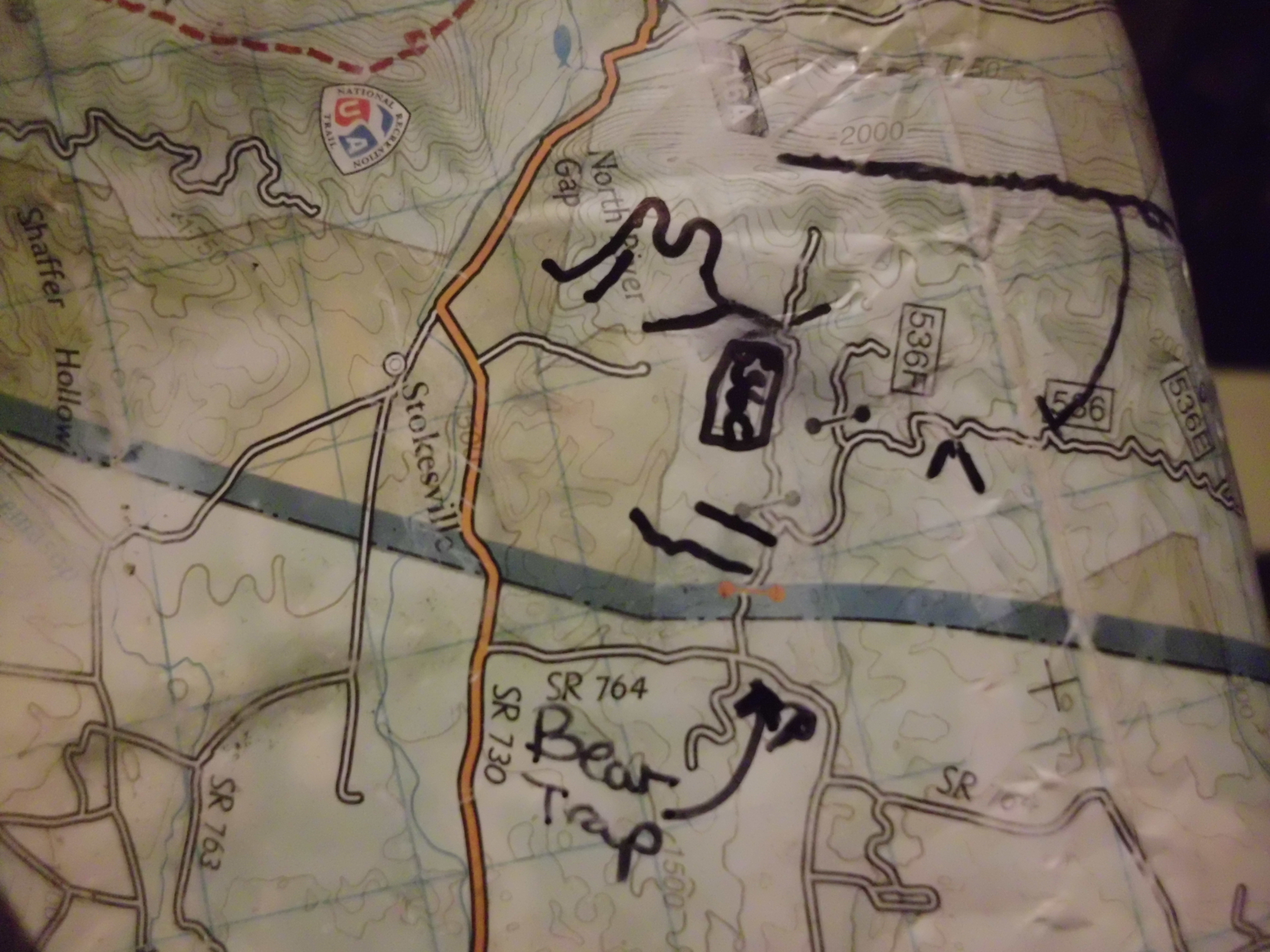I think I found the first fire road and I spent my day exploring it. I have drawn in the trails I talk about below in the locations I think they are to the best of my non-artistic ability.