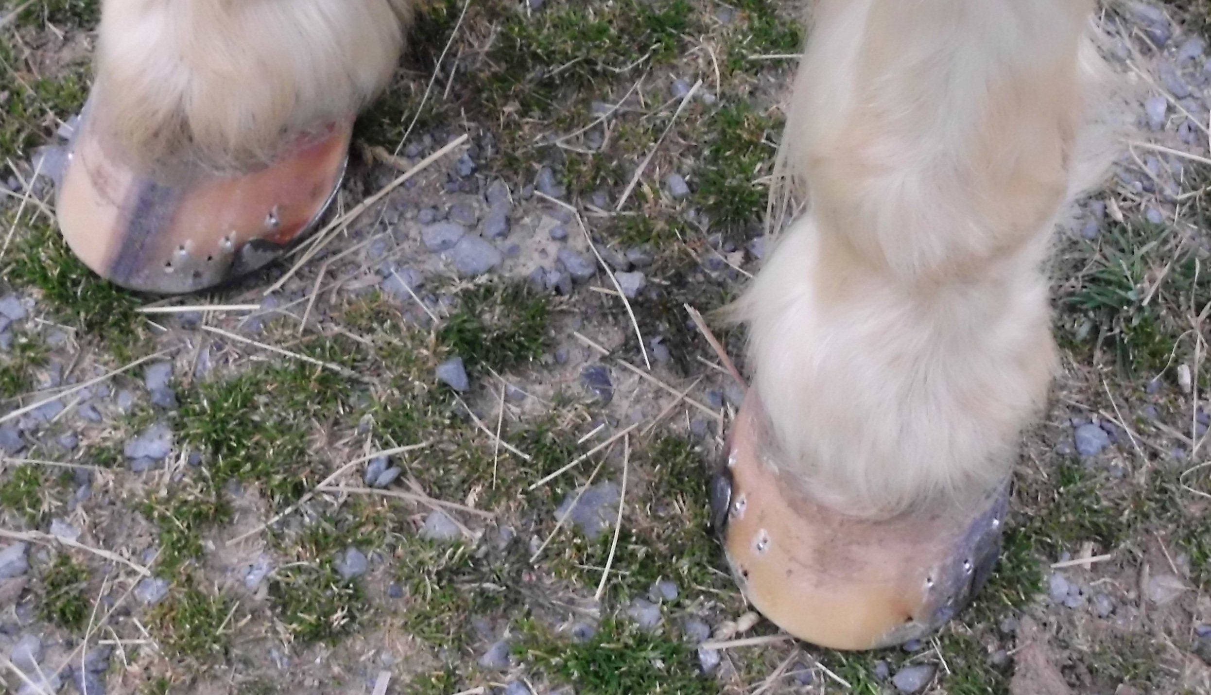 Another factor to consider when choosing this type of shoe, is that it does grip all of the time.  Where normal shoes, or a barefoot hoof is able to slide a little, Simon’s hooves will now grab all of the time.  Sometimes this can cause a little bruising or soreness in some horses and it tends to be a tad more jarring for them.