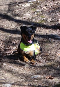 The dogs also had a great time. They love spending time in the woods and usually go on trail rides with me. Daisy usually wears her safety vest. Mainly so I can spot her as she zips all over the place, but, it also makes me feel a bit more comfortable if there are hunters around.