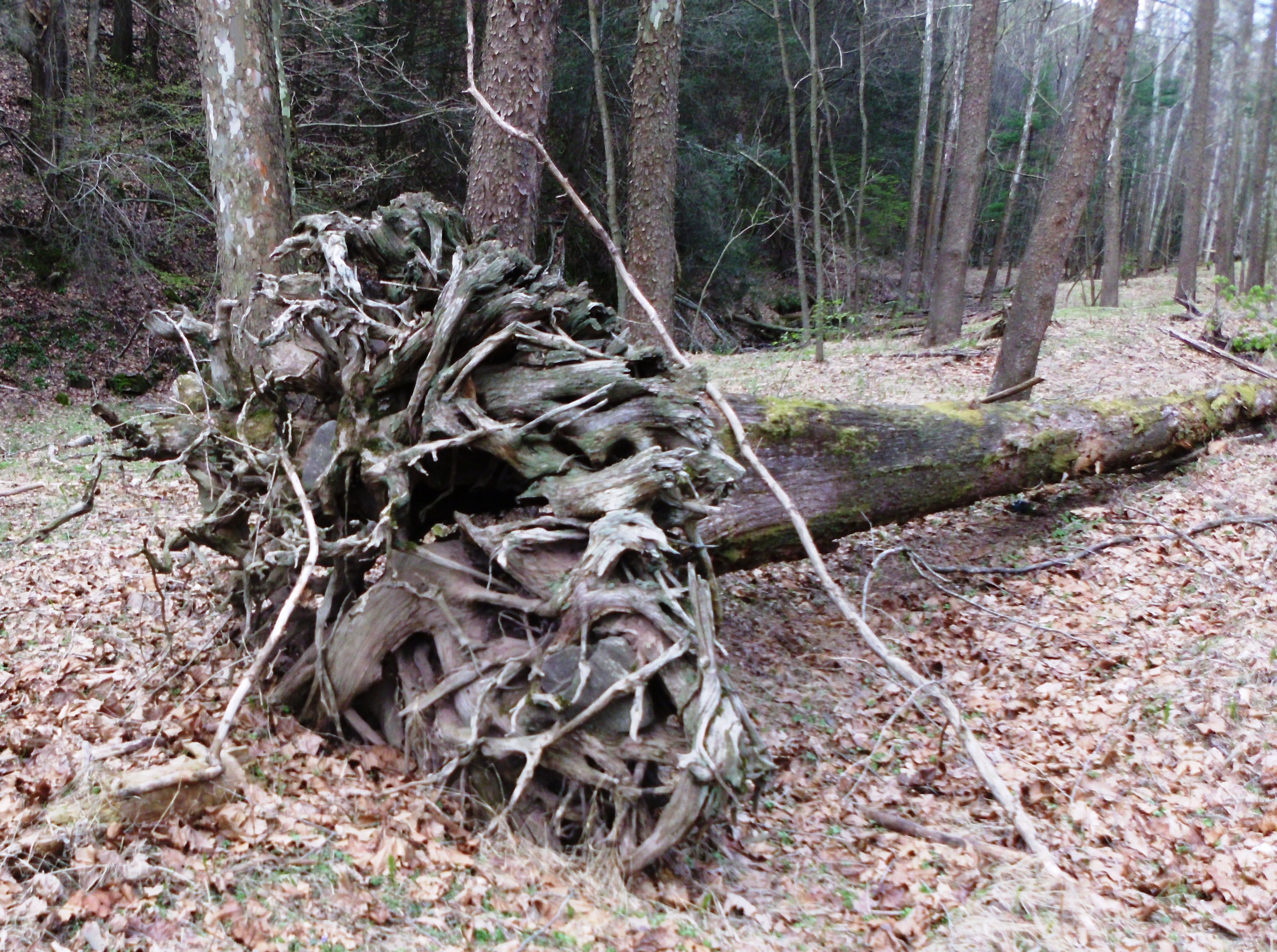 An old uproot tree on trail 434 in the flood area.