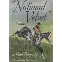 The race is a bit nostalgic, and when I brought it up to a friend she said when she was a girl and read the book, National Velvet, she wanted to ride Pie in the Grand National.   Although now that she is an adult, the thought of riding in it scares the pants off of her.  I also read the book and watched the 1944 movie, over and over again.  I also wanted to be Velvet Brown, played in the movie by Elizabeth Taylor.  The book was published in 1935, with the story of this 12 year old girl taking place in England in the 1920’s,  when it was still common for armatures to take part in the race.  Although not women.  Velvet took an unruly horse and with the help of her best friend Mi, played by a young Mickey Rooney  in the film, trained for the Grand National.  With her identity and gender hidden, she took part in and won the race.  Quite the story for the horse crazed little girl!
