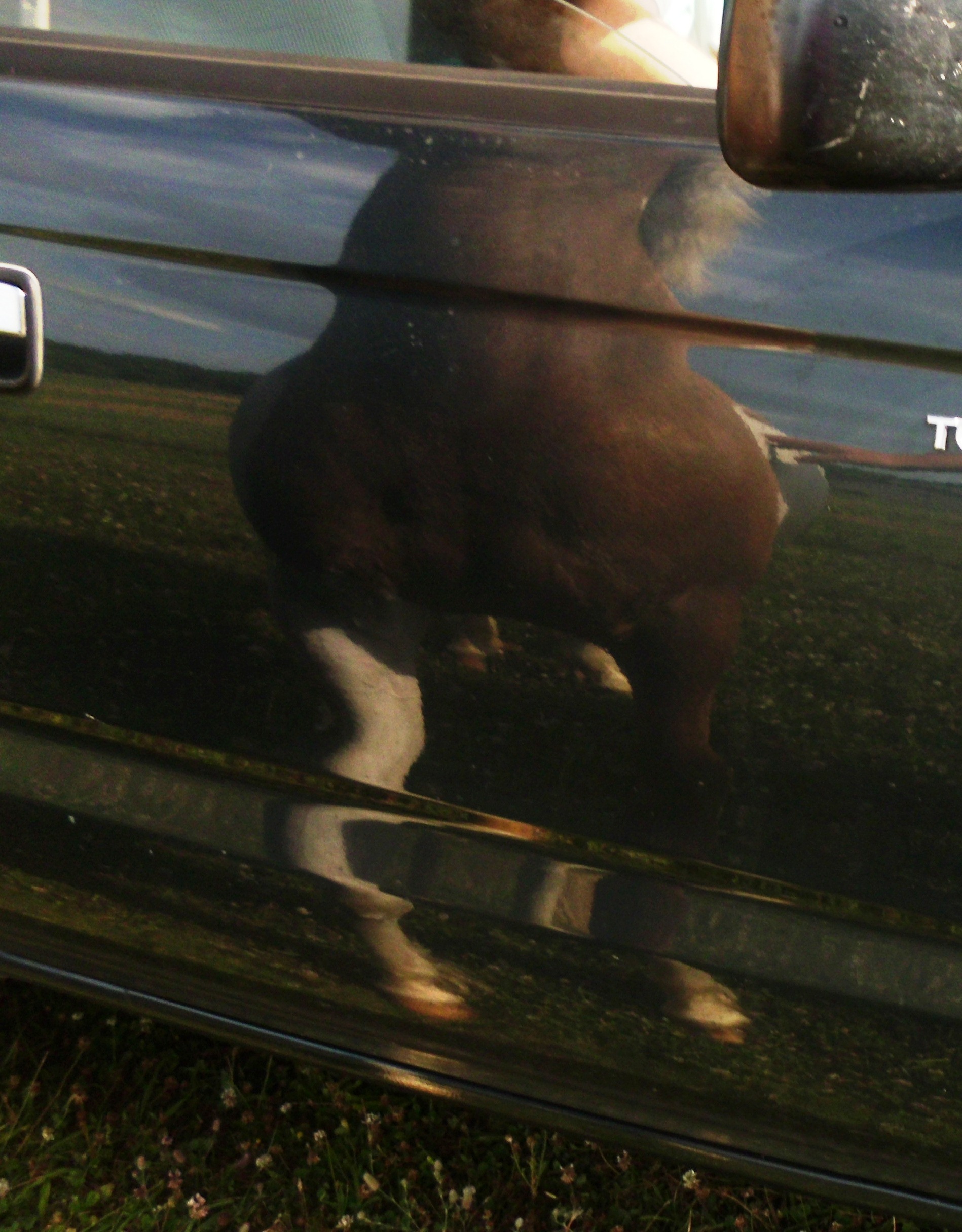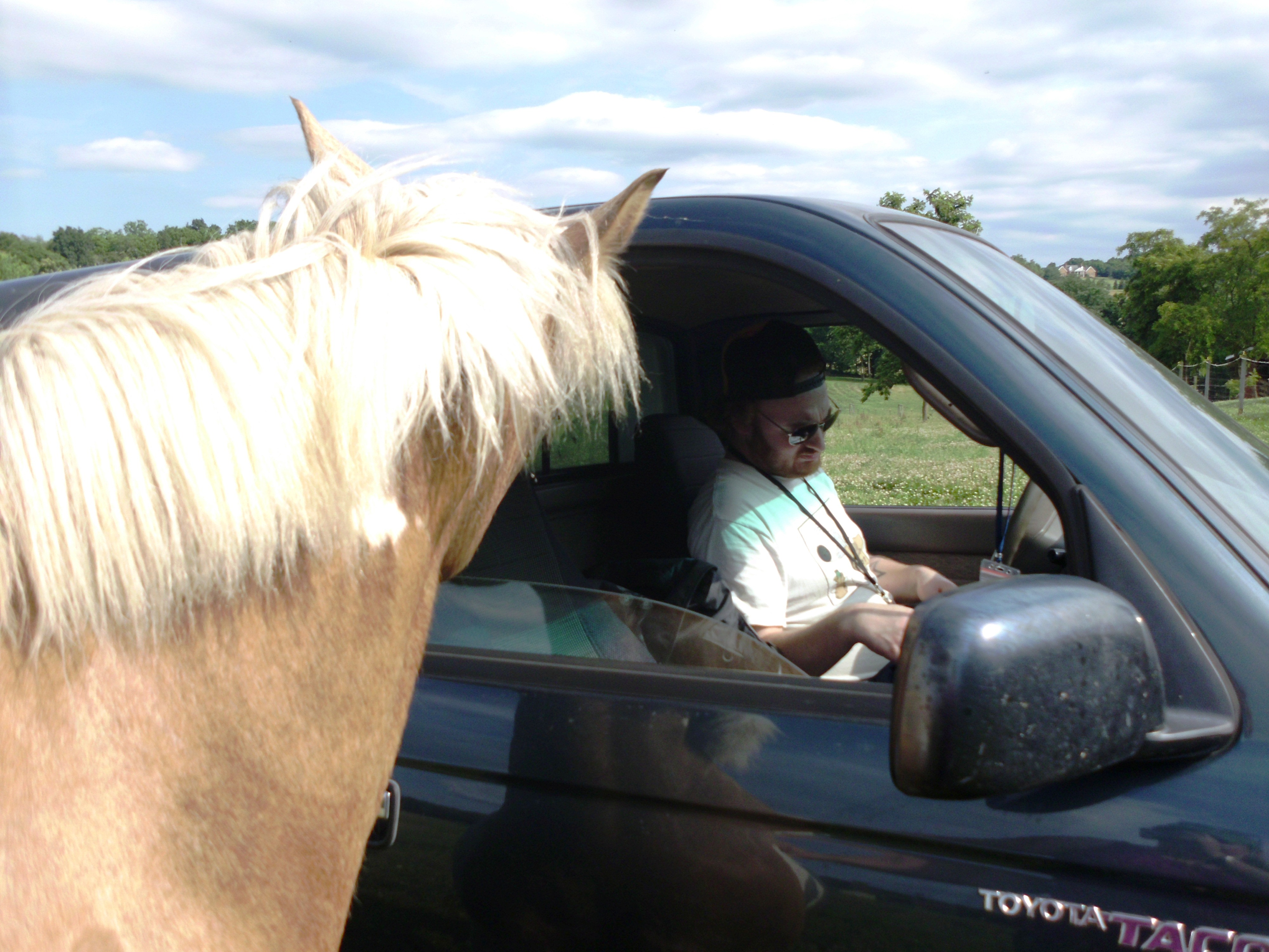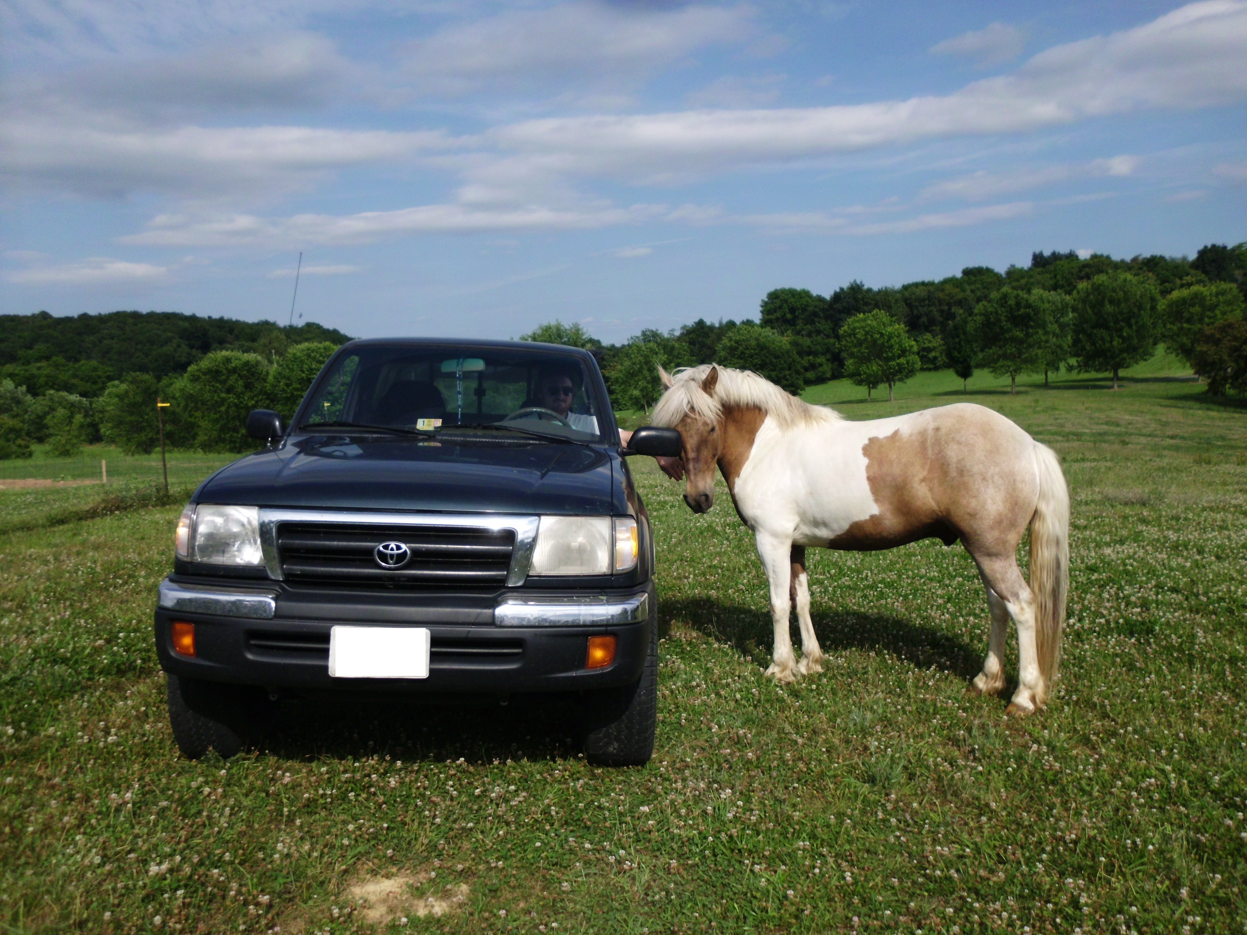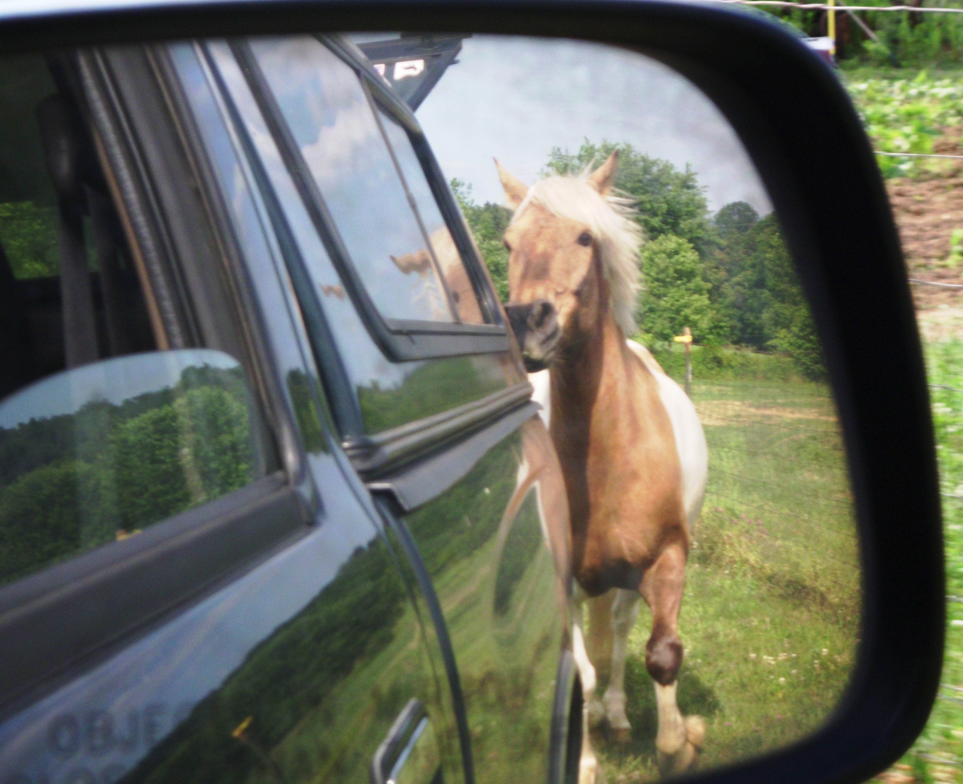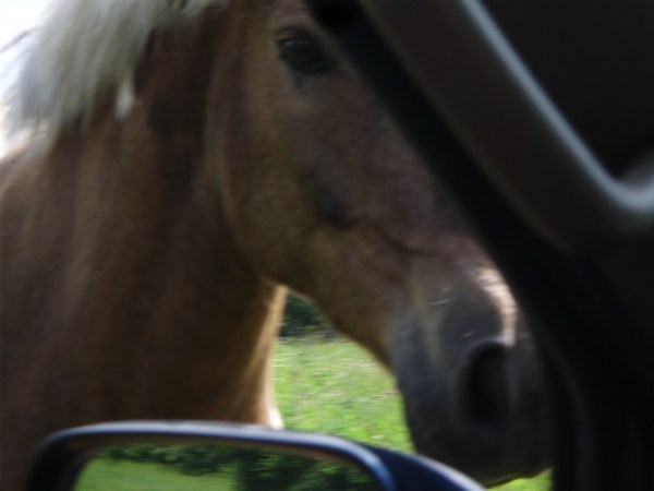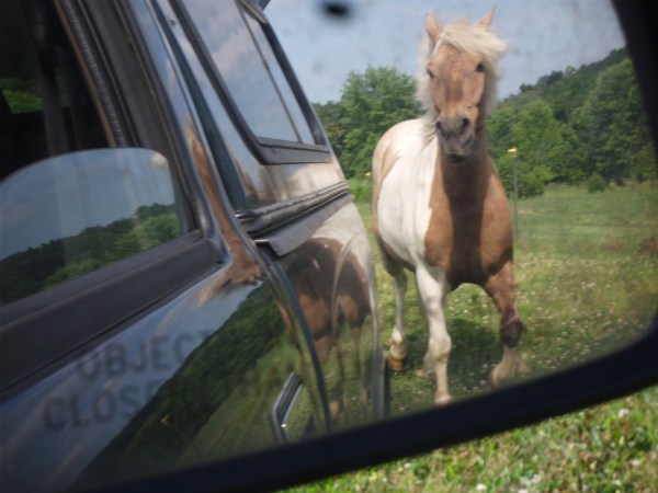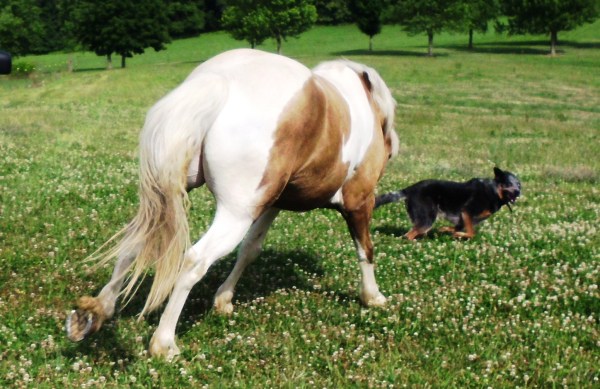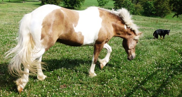 The dogs were with us and Simon was a bit uncharacteristically cautious at first. He stood up by the barn whinnying to us, but he finally gave into his urges and galloped down to see what mischief he could get into.