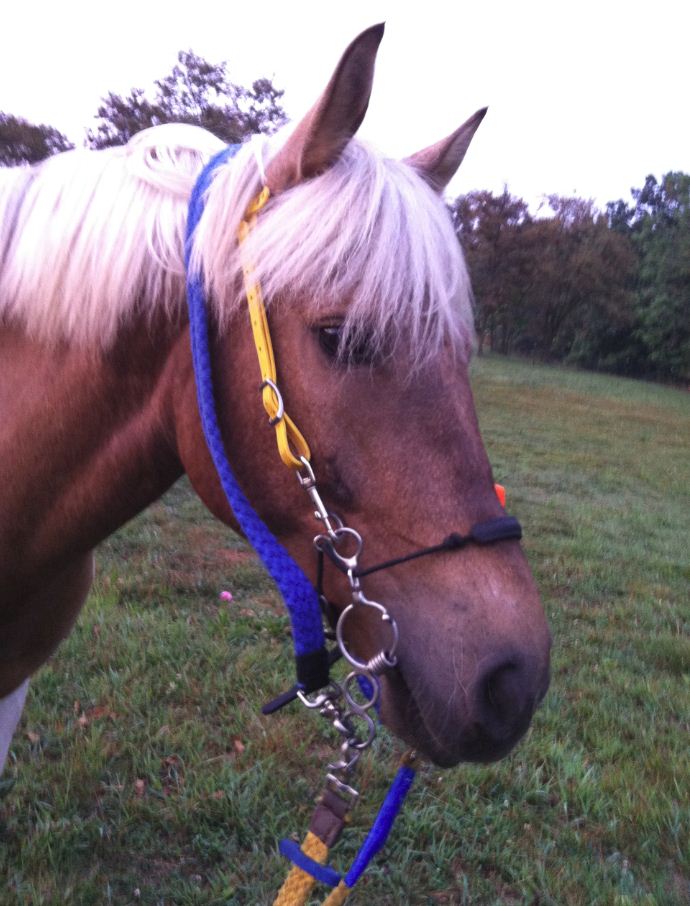 He has been spending most of his time in the barnyard lately, which provides a very limited amount of grass, thereby preventing him from getting too fat and cresty or foundering. But every few days I let him out into the riding field for a few hours to get in some light grazing. The grass is pretty dried out and not too high in sugar content because of all the hot dry weather we have been having, and Simon is also not the type to just eat eat eat. He wonders around while he grazes and eventually returns to the barn yard to make faces at the chickens and wait for a person to come entertain him.