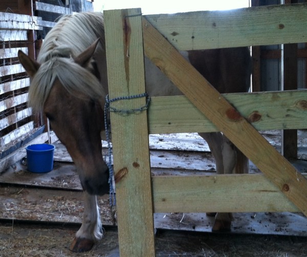 Last week he made his way into the barn by busting the chain on the door. Luckily he was caught before he had made too much of a mess. It only cost one bale of hay.