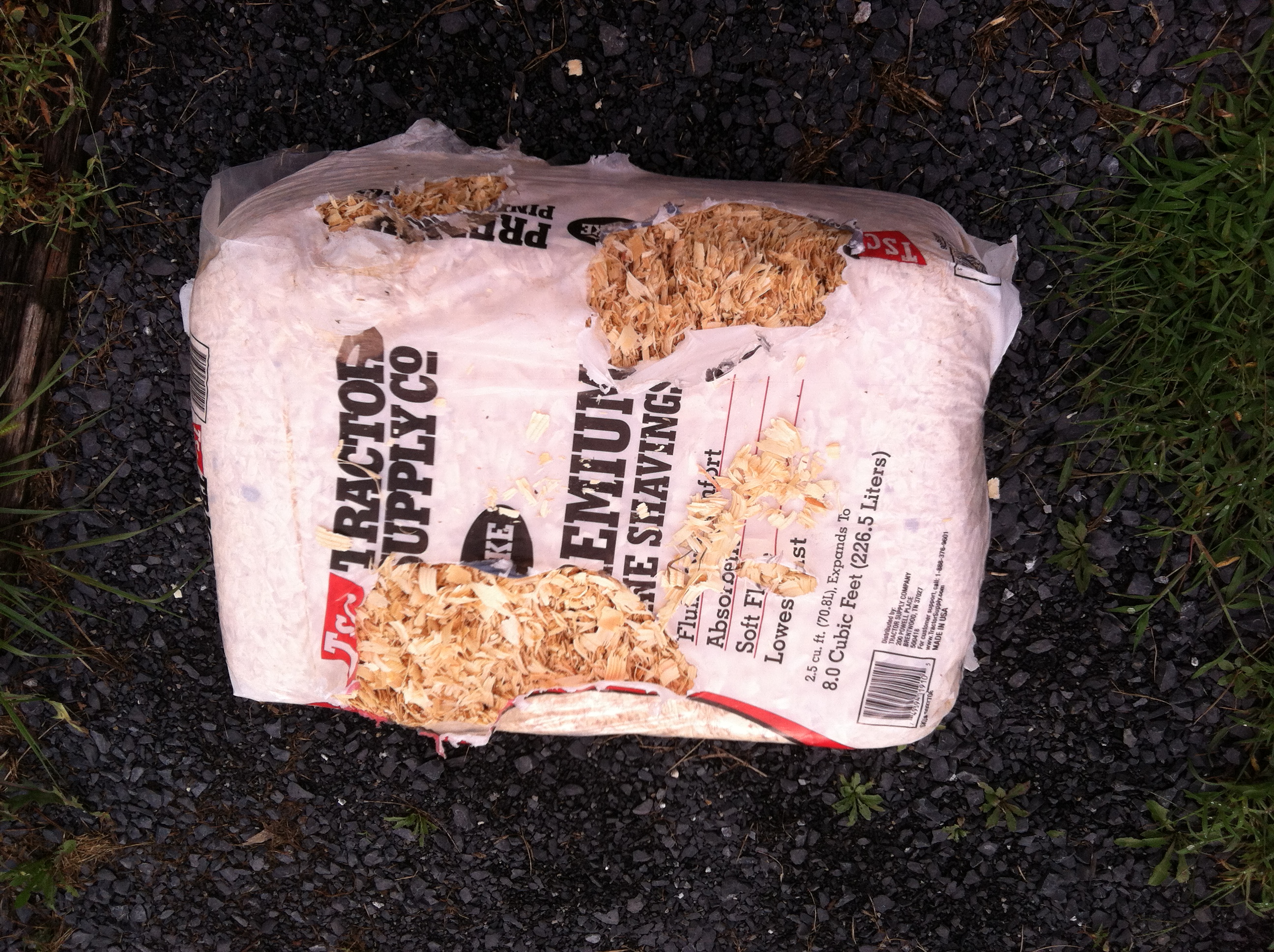 On the way to the competition last week, I swung into Tractor Supply to pick up some bedding to use in Simon’s stall.  I made the purchase, got excited they were on sale, and tossed the bales of shavings into the empty side of the trailer.  I then finished the drive to Carol Ann’s house to switch to her rig for the longer portion of the drive.