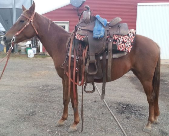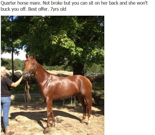 And no, the ad was not for a lot of saddles and a horse. Just the horse (with a lot of saddles on it). I suppose this shows how calm the horse is? balanced? not sure.