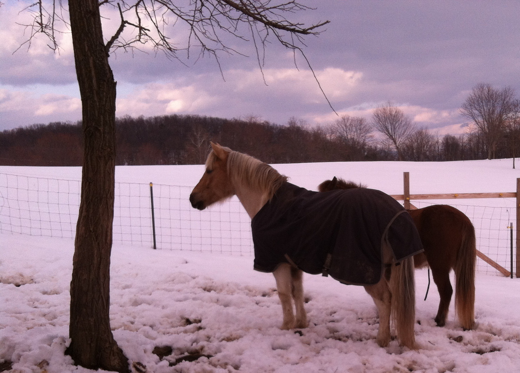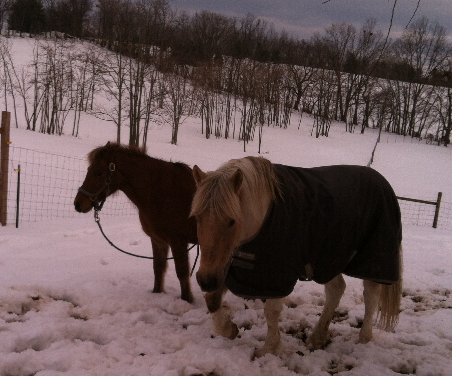 Yesterday I put Simon in and approached Cooper with a bucket of feed. It only took a few minutes before he gave in and let me catch him. I brought him in put him in the cross ties. I brushed him, and gave him lots of cookies and attention. I also held his feed bucket while he ate and continued to pet him. When I let him back out at the end of the short session of attention, I switched him to a breakaway halter and left a lead rope attached.