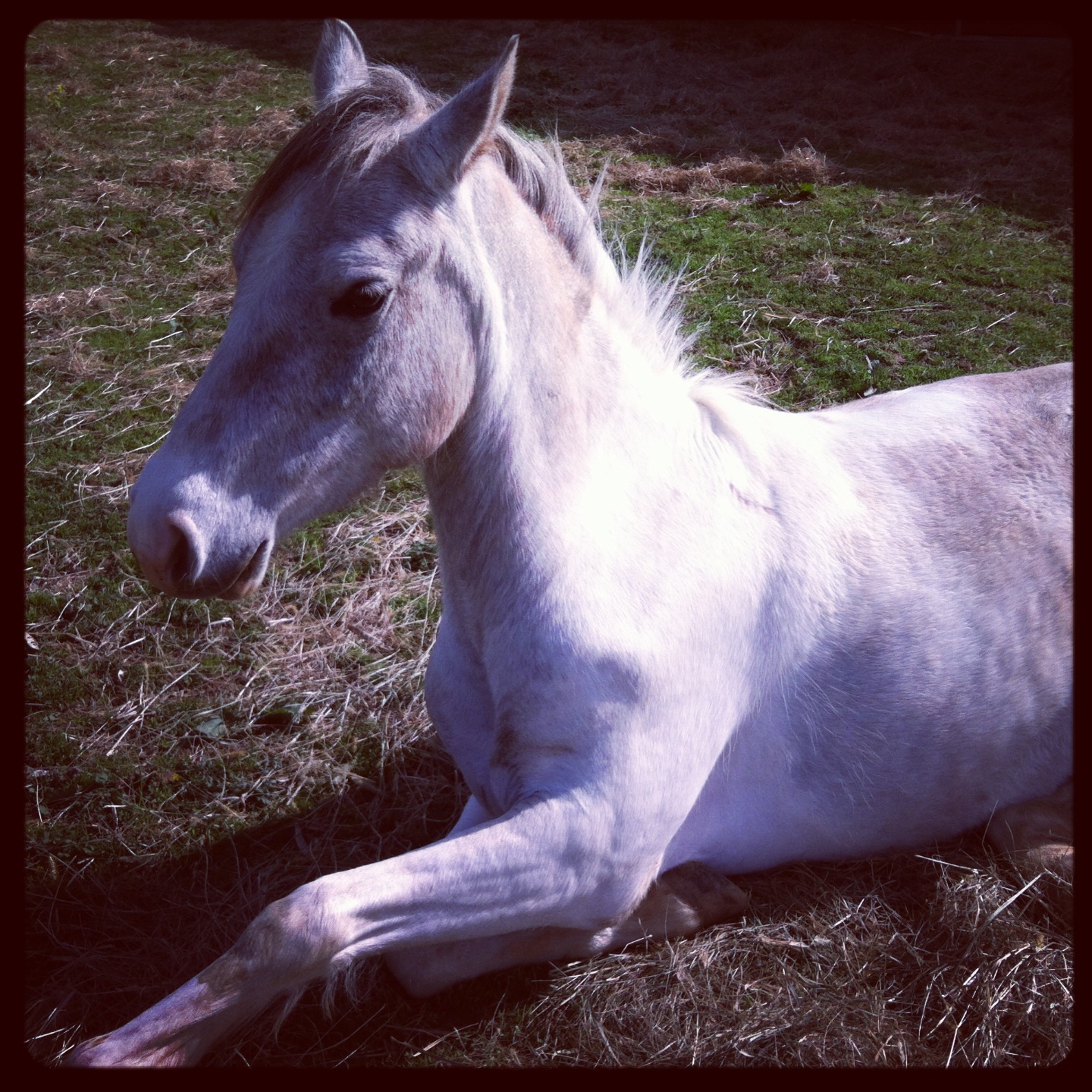 He likes to fluff up a pile of hay, and nap in the middle, where he can eat while he relaxes.
