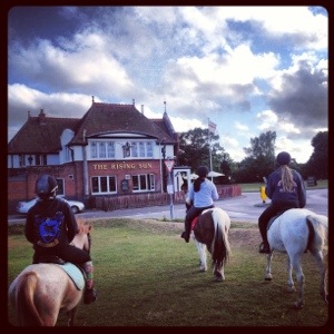 Once we got back we tacked up and went on a hack through the forest, attempting to avoid the crab flies (unsuccessfully), and made a pit stop along the way at the local pub. It’s interesting how horse friendly the area is, they even had a hitching post in the back.