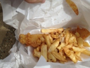 She revived us with a meal of the infamous British fish and chips which we ate with our toes in the sand along the English Channel.
