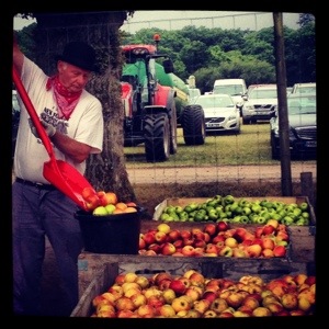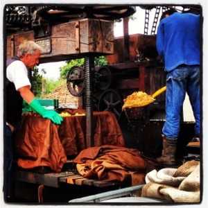 We were walking around and I saw some neat tents like a blacksmith tent and I was like “ooo” and we checked them out. One of them was old time farming stations that they were making apple juice by hand. They loaded buckets full of apples I o this machine and then apple juice came out. It smelled really good like apples so I bought a bottle. We tried it later and it was really really good.