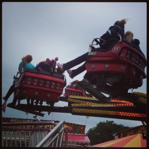 We were on our way out of the grounds and host Megan pointed out a ride that looked like fun so we all piled onto the ride. It was a tight squeeze and it started off casual, spinning in the air and then it started to jerk up and down and speed up. Everyone was screaming and having a good time. It was wicked awesome.