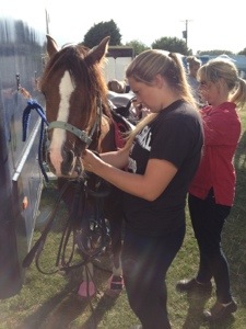 I gave the girls a break from me and hopped into the horse van with Mark for the ride and the girls all piled into the Lory with Rob and his family.