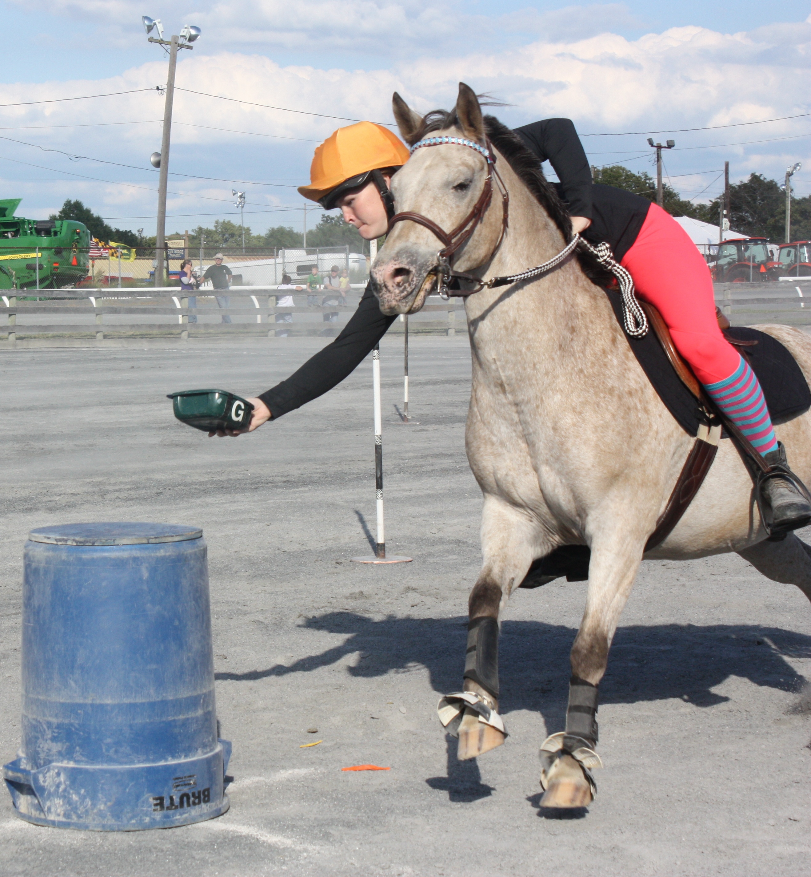 On Friday MGAA, Mounted Games Across America, riders took part in an individual mounted games competition at The Great Frederick Fair in Frederick, Maryland. We started the day with an Open and an Adult division. This was followed up by a Jackpot division. Each division drew heats and competed in two sessions of six races to get placement in the final divisions. Everyone looked great and played expertly.