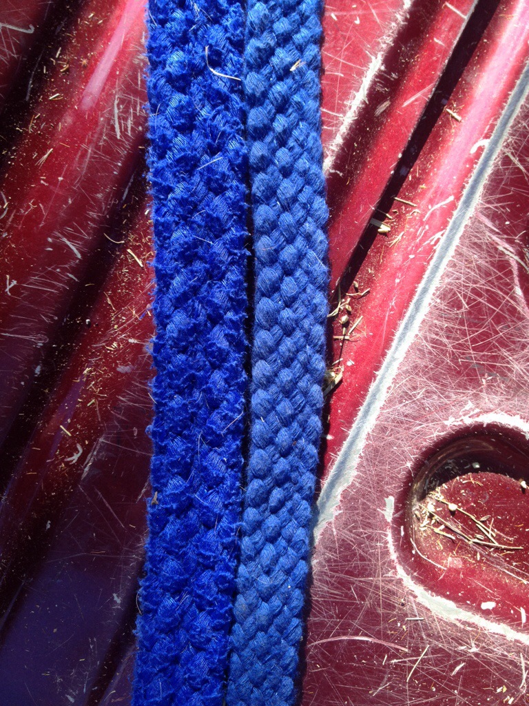 Recently I ordered new blue reins for my new Pony Poe’s team gear. But look at this photo. The old ones are nearly twice as wide as the crappy new ones. They feel thin and flimsy companies to the nice soft wide old ones.