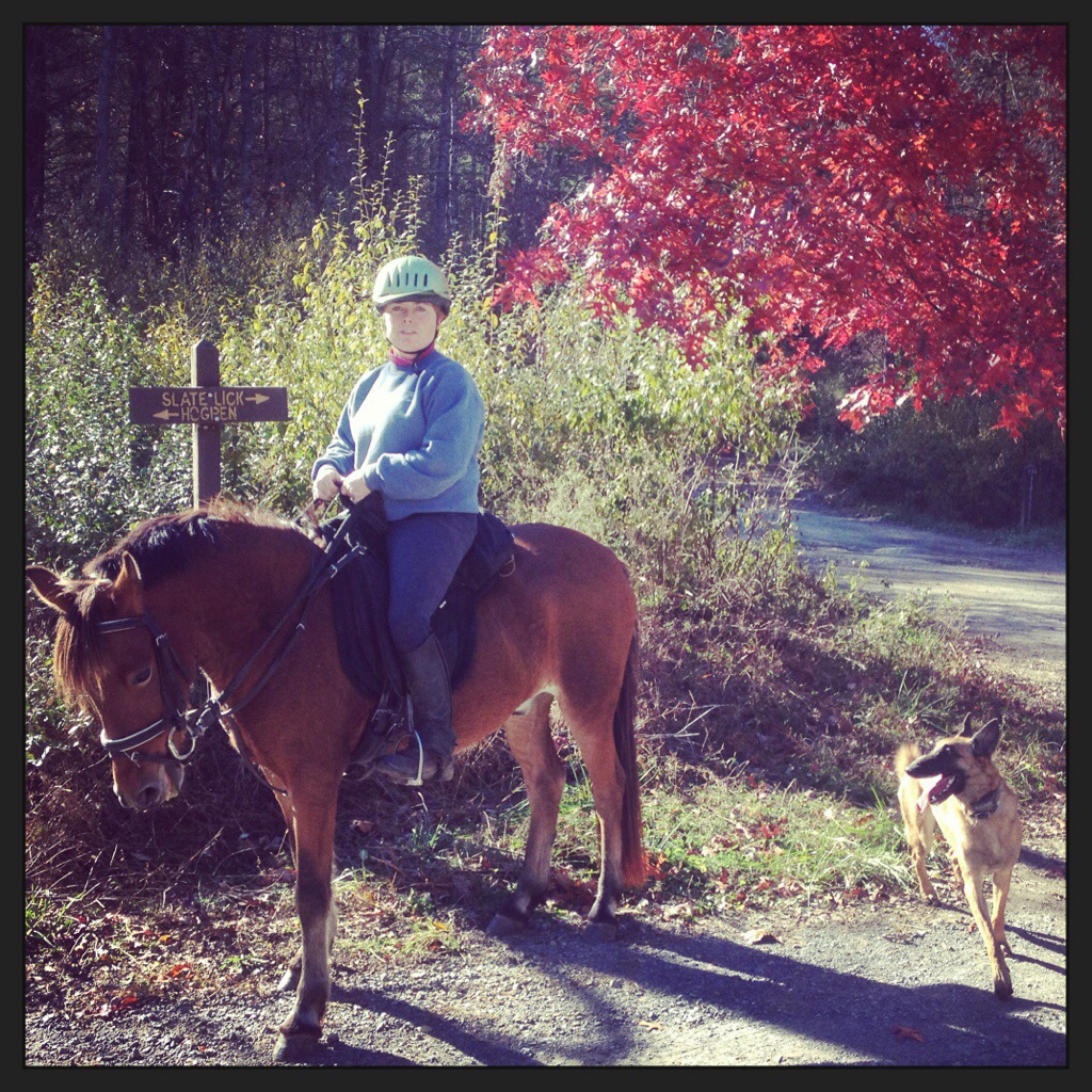 Today I loaded up Simon and both dogs and we swung by and picked up Carol Ann, her pony Puck, and her dog Maggie and we went to Slate Lick for a ride.