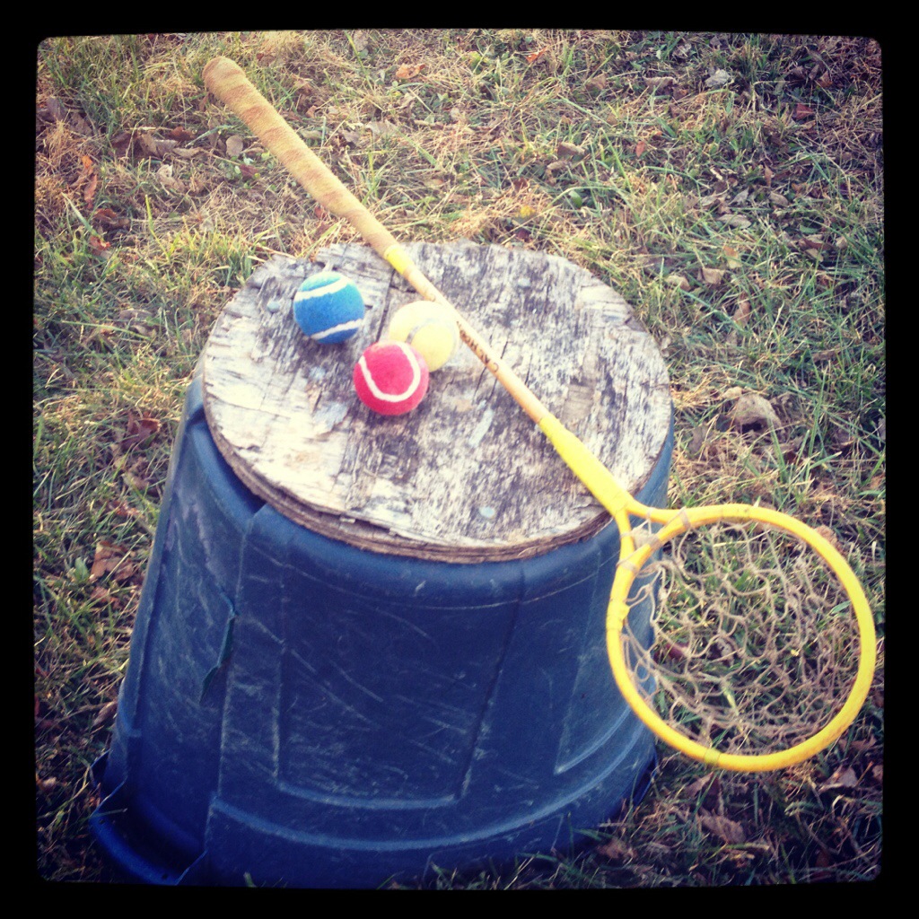 Monday night, I equipped myself with the new racket and hopped on Simon and we played around with one of the tennis balls I had in my games equipment. I am told that a tennis ball is not ideal, but it’s what I had, and it was fun.