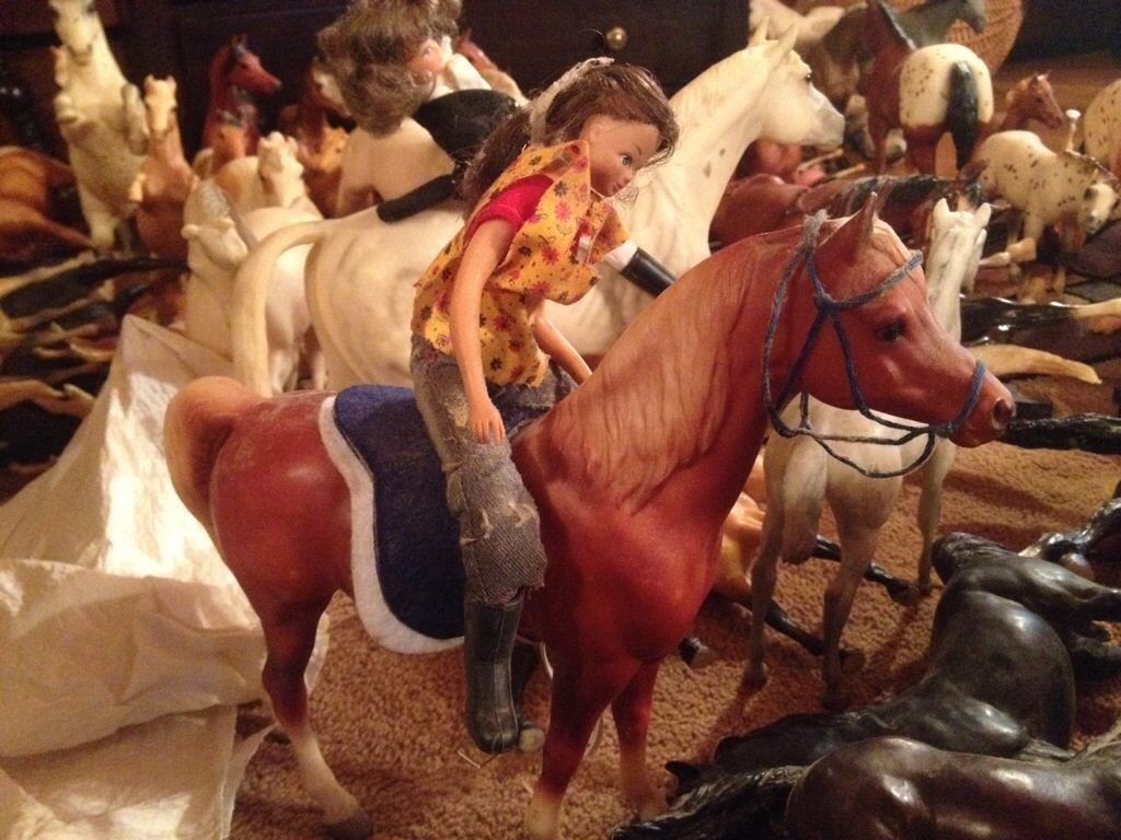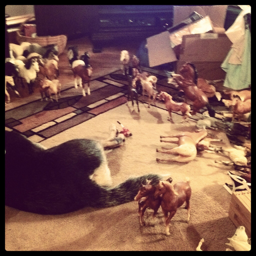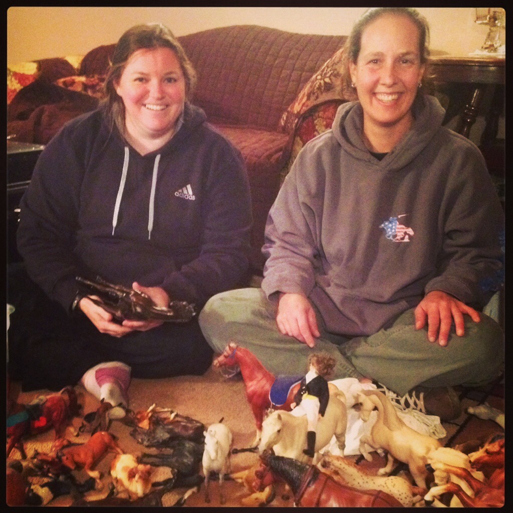 Later my dad helped us break out my old Breyers horses. It was a lot of fun and reminiscence of childhood. We set them all up and tried to match the sets up.
