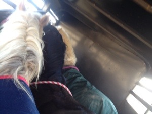 Carol Ann and I both have two horse slant load trailers, but since we are talking about ponies, it is possible to leave the divider open and put in a third pony. We have done it before with a different combination of ponies and we had both of our trailers and three extra wide ponies with us. So we measured our trailers and then stacked the ponies inside.