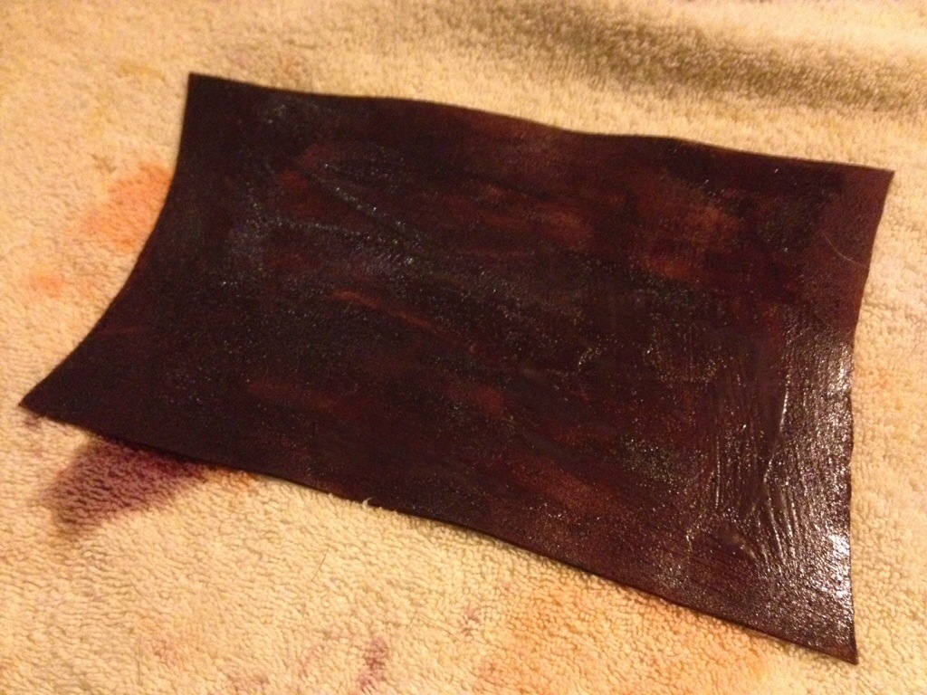 Then I moved onto the Crosby.  I was originally going to patch the rips on both sides, but since it had spider webbed through the center I decided to cover the whole area.  I cut the leather to the right size, applied the glue, allowed it to harden, and the placed the patch.  I then spent a few minutes pressing down on the patch.