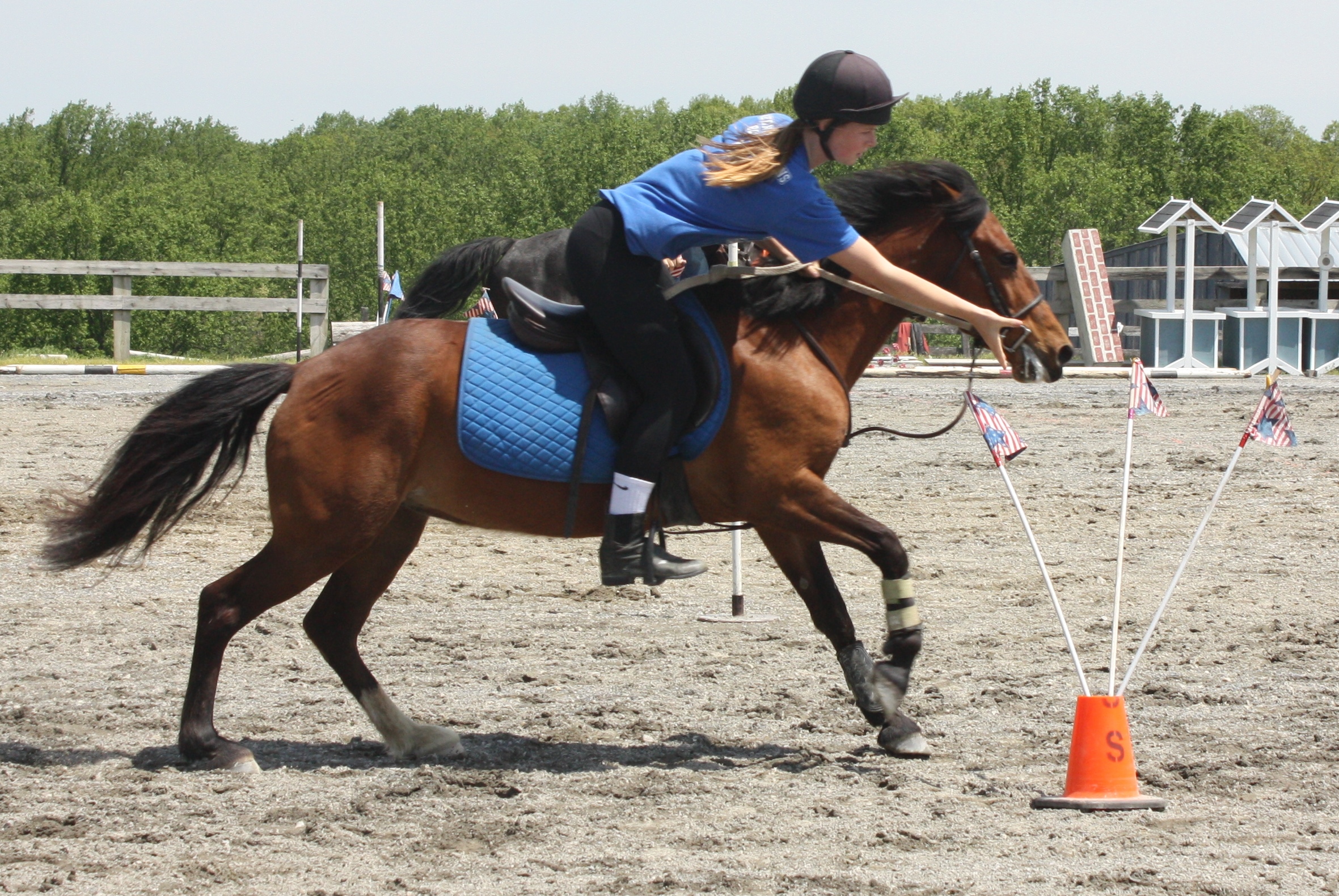 The adult riders showed up for the final division of the day. We were broken into two groups, A and B. Devorah from Pennsylvania was enjoying her mother’s day riding Simon in the B group, with Sarah and a new games rider, Maria. They had a fantastic time, and I was so happy to see Devorah smiling ear to ear and she successfully negotiated races with Simon. They both looked like they were having a grand day.