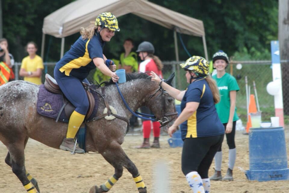 For the actual competition, team Old School was a little mixed up. Carol Ann opted out of the competition, and we were planning to go at it as a four man team. But we got lucky on the Thursday night before the competition and managed to pick up rider, Kristin and her pony Tex, from Pennsylvania. She brought along her cheery personality, and laid back attitude and made a perfect addition to the team. Linda was on her new pony, Diamond. Linda had just purchased this mare, and she was very new to the sport, although she did excellent, and Linda and her are going to be amazing as they grow together. Averi also rode a different pony, this one a long time games pony, Ducky. Kim was on her usual, Chip, and I was on Poe.