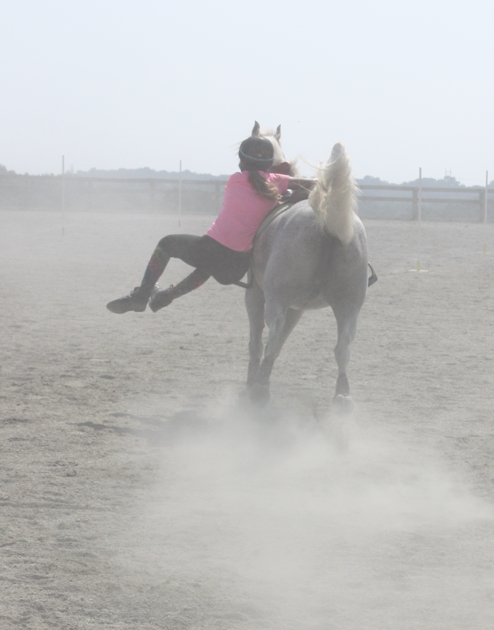 My skills were also very off. I did not push for speed, and still I made an excessive amount of sloppy mistakes. A few I can contribute to my back being tight (missing a dunk in carton and my picks in both runs through bottle). But I also dropped a mug, missed a flag pull (seriously, sloppy), I am sure a few others I am forgetting. I also was having particularly trouble mounting still. I am getting right to the top, and that last little pull to help my leg round the saddle is when my back hits the too tight point. I also think I am a little nervous about Poe moving, and then being at the no -returns point and having another fall. Luckily I was allowed to have a few butt-pushes to help me.