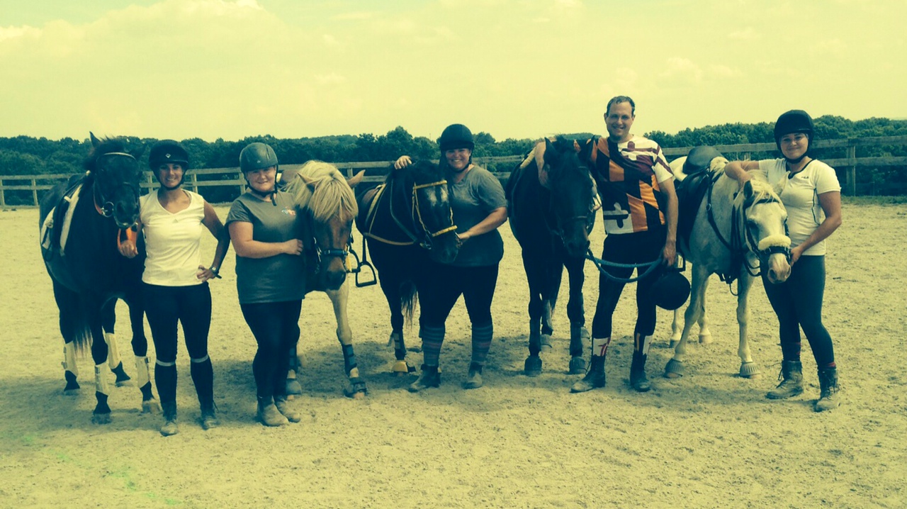 Although it was not really a ridiculously hot day for a typical August, we have been treated to particularly mild temperatures this year, and this day turned out of the one of the hottest of the year. It was also excessively humid and sunny. I left my house before the sun was up, and was already soaked through my tank top, with sweat rolling down my face. And once I got riding, the weather really zapped me. I think this was true for everyone, and we all panted through each session.
