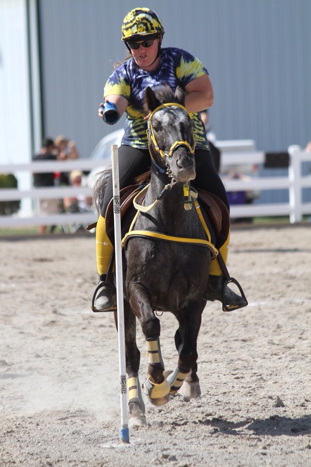 The Masters A final was a good spectator sport as always. Northern Heat, did not make the cut and were the winners of the B final. I enjoy watching that team and some of the rider pony combinations on it are really outstanding. Punk Rock Ponies was handicapped as a four man team, with Regan absent. The Calhoun sisters were riding hard, and as smooth to watch as always. Mack and Inky were looking good on Limitless, until Mack took a knock to the head in Ball and Cone. She was still spectacular, getting the hit in the head after placing her ball, and still managed a clean speedy pick up and handoff before being pulled from the rest of the session. Kelsey and Muffin are another pair that I love to watch. That pony eats the field with her stride and Kelsey has the skills to go with her. Jessie was on an older pony of hers, and not her usual ride. She rode well, although, not evident in other divisions, you could see the lack in this pony’s speed compared to the masters A field. Limitless pulled off the win (78pts) followed by Punk Rock Ponies (71pts), Adrenaline Rush was 10 points behind in third (61pts), followed by Crash (57pts) who won a tie breakers with Inception (57pts), Rush Hour (46.5pts) and Get Lucky (44.5pts).