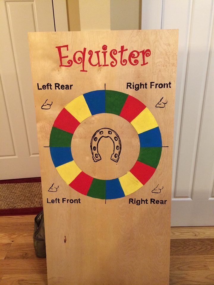 “Twister” was the next obstacle along the course, and included a really well made spinner! The rider spun the pin, and it landed on a color and hoof. Then the rider needed to place that particular hoof in that particular color. I went first and Simon did challenge me a little by deciding to rest his hoof on the toe in the circle, before I got him arranged properly. Sprite was also a little antsy. Rhea wanted to spin the spinner herself but then squared up in her circle nicely. Easy-peasy and on we went on a nice hack through the woods and hills.