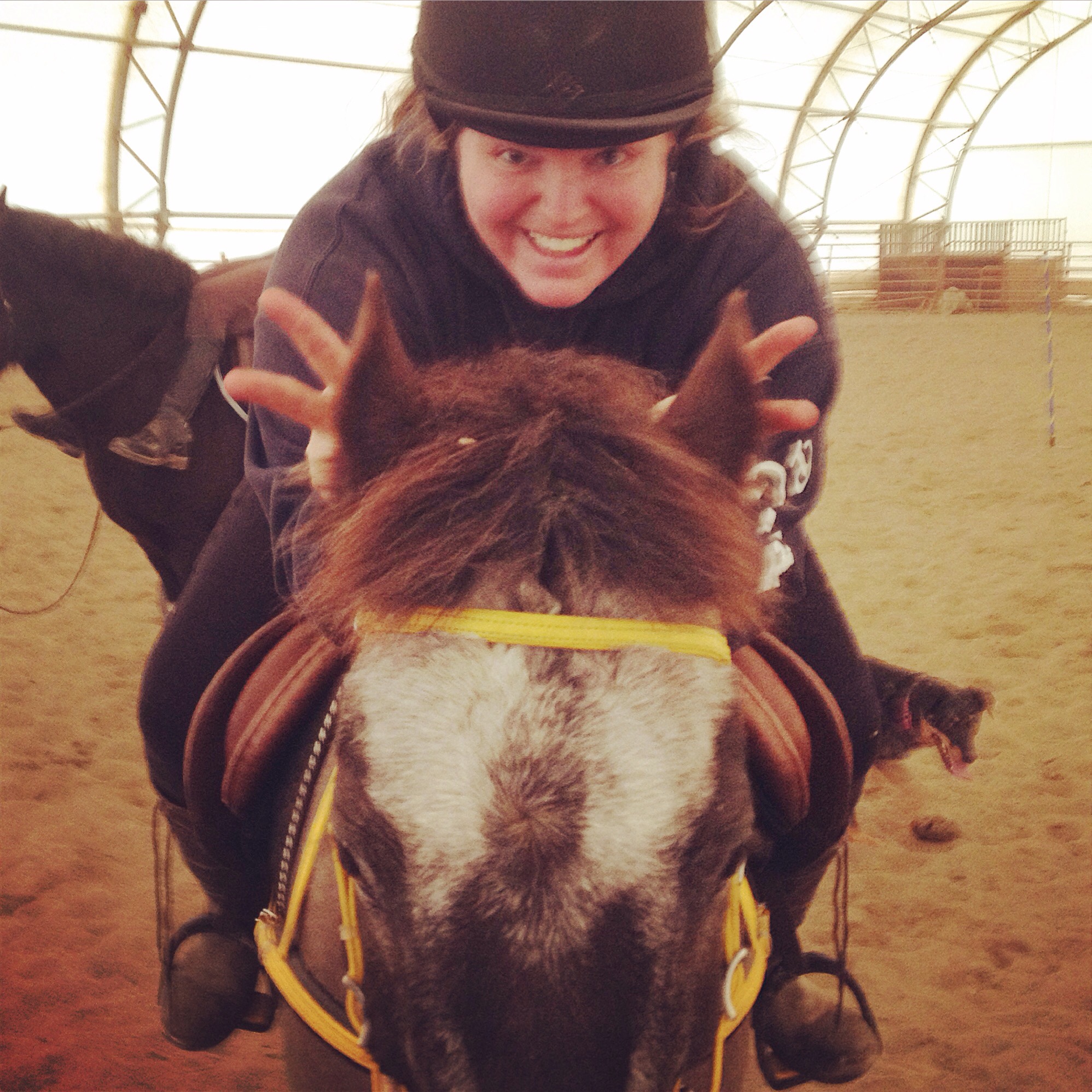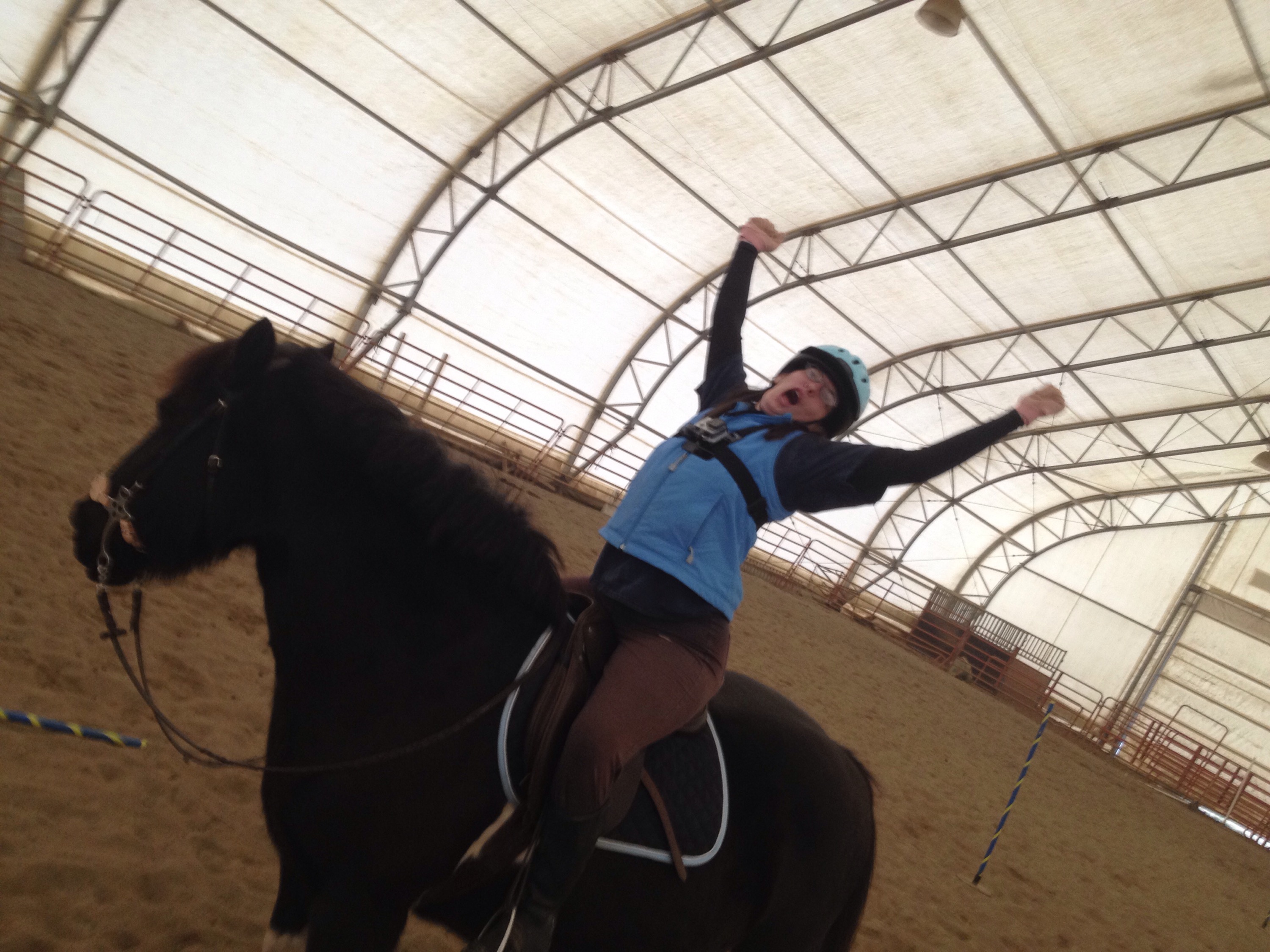 I was feeling really on for two flag, getting my put ins nicely at a canter. Bottle also went particularly well, with me practicing my center placements, and also getting those smoothly at a canter. Zoe brought to my attention that I was leaning over effectively, which I realized was the case. We practiced some ball dunks and I felt really good about those, making each one nice and cleanly, and acknowledging how far I was leaning. I was also really happy with sword race. We worked with the plastic rings today, and I felt that Zoe and I had really solid speedy handoffs (without loosing fingers, thumbs or rings!).
