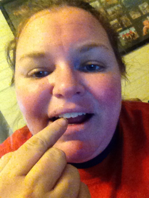 My ponies have no regard for my teeth. Today Simon head bumped my chin during feed time. It wasn’t even hard, but it was enough for my teeth to chomp together and chip one of my front teeth. Actually, it is a chip in the fake part of my front tooth. The fake part was from when I feel off Poe in June and broke some teeth.