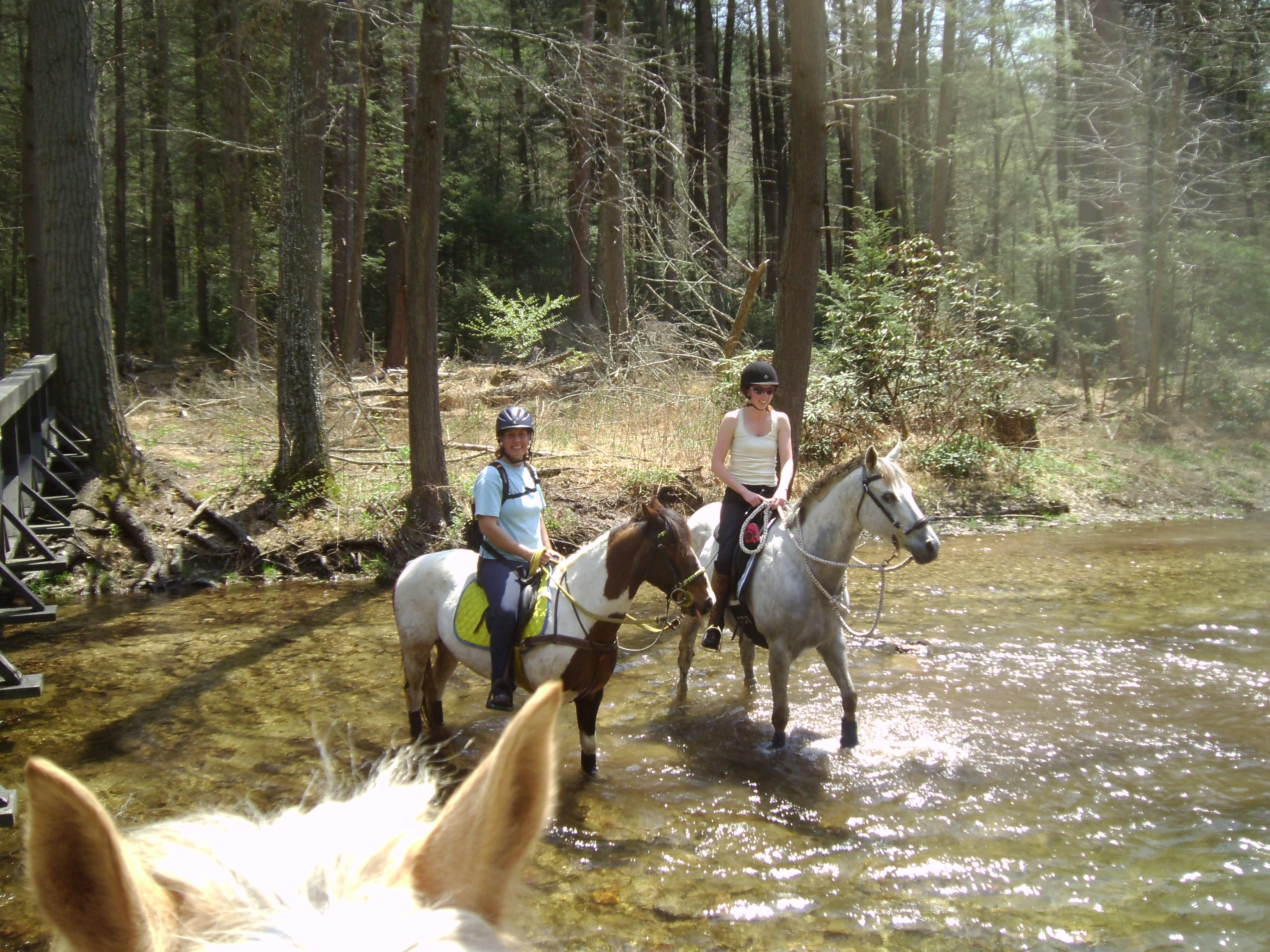 This weekend I drove up to Pennsylvania to drop Spike off for “camp” with my friend Lindsey. I decided to bring Simon along and have a sleep over. Saturday evening we went for a light hack at Lindsey’s farm. Then we had dinner and hit the hay. Sunday we met up with Lindsey’s really cool friend, who is now my friend too, Sara and her horse Yoshi, and headed to Some trails.