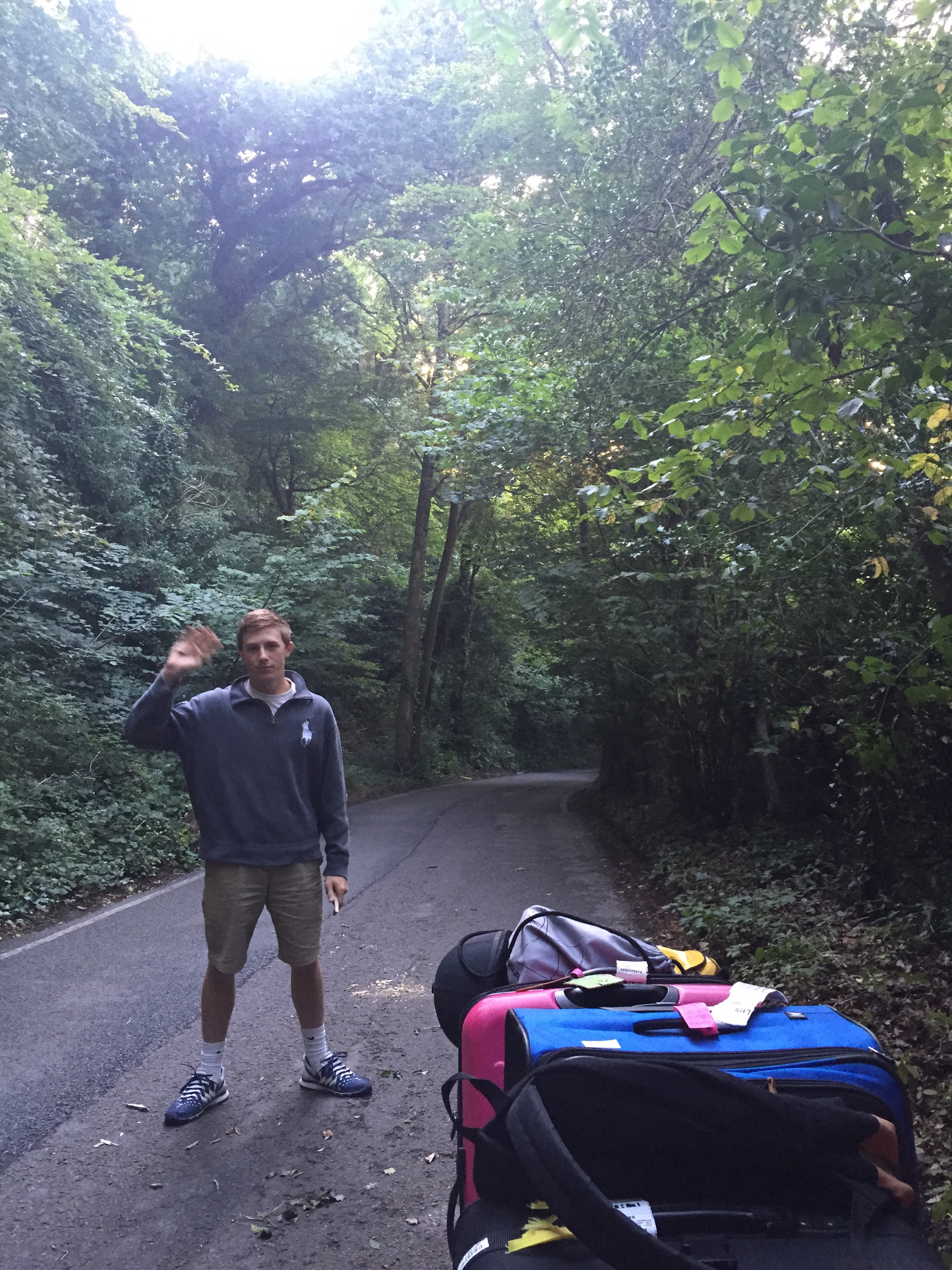 We were an hour into our journey when we came to a rolling stop in traffic and the clutch went to the floor. We pulled up the clutch petal and it went stiff so we are unable to push it down. After messing with it for a moment we get it to function. But the smell coming from our car started to strengthen. We were winding up a steep mountain on a densely wooded back road, church lane, when we came to a stop with the engine revving and the clutch to the floor. Smoke began swirling out from the hood. We had smelled the burning from the time we started driving the car but we thought it was the buses around us. We determined that the clutch was blown and no way the car was going anywhere.