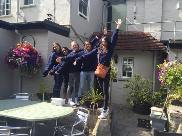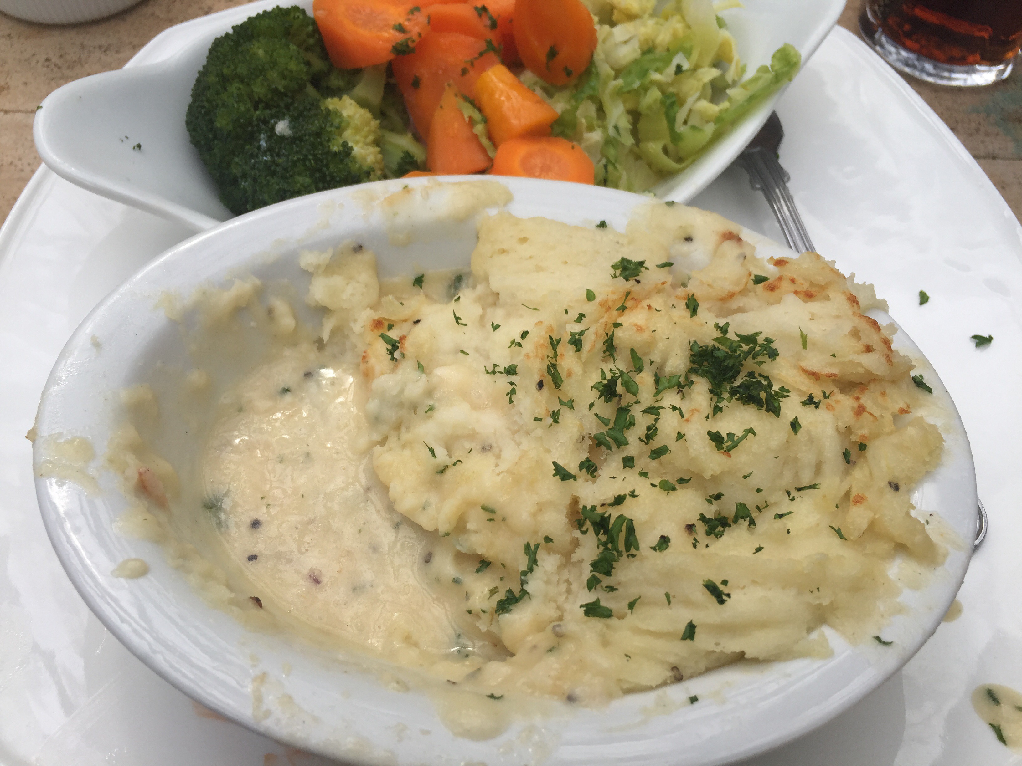 We hopped back in the van and made a second pit stop for a bite to eat at a quaint pub called The Rose and Crown. Mackenzie gets the gold star for trying something new – fish pie! The rest of the team played it safe with burgers – lame.
