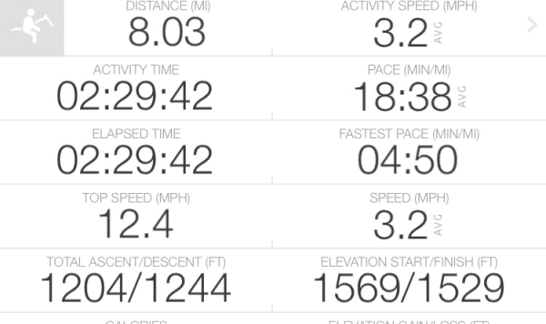 It was an easy trail to follow and mostly clear. It eventually got really steep down and I did have a touch of trouble keeping on what I think was the trail. It went down and left you along the creek in a gully, with a mostly easy and clear trail that shortly popped back out on the FR right before the parking.