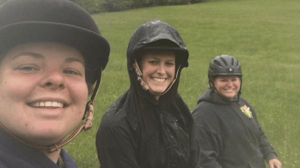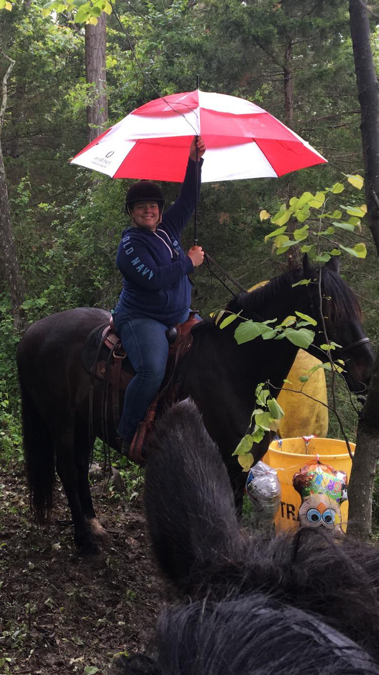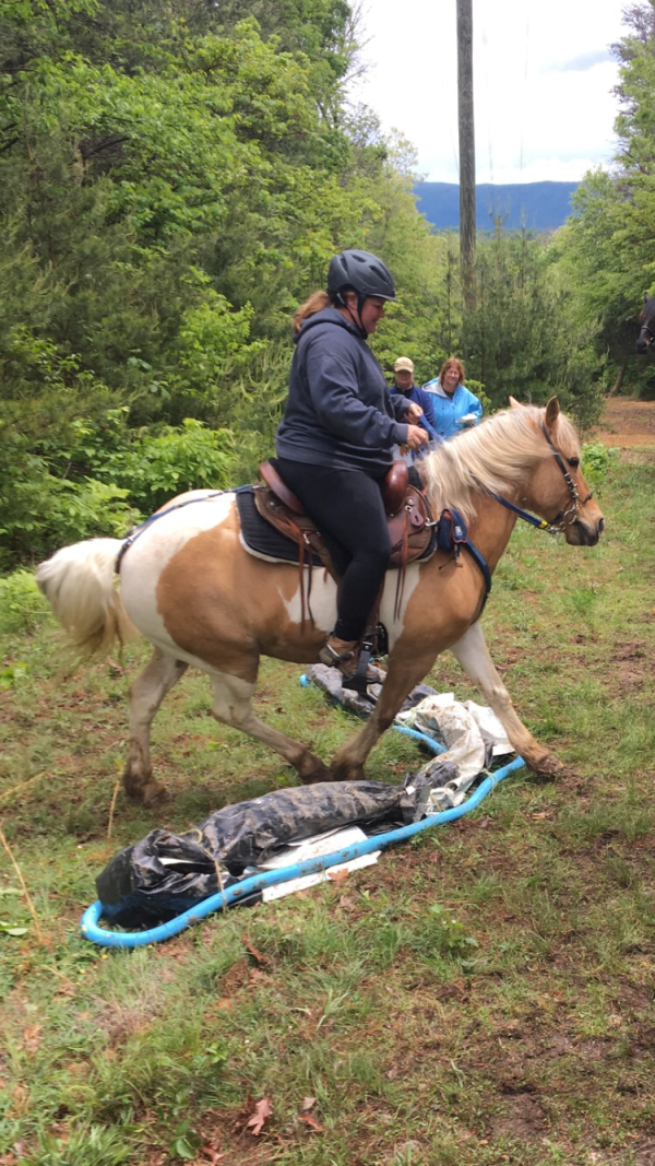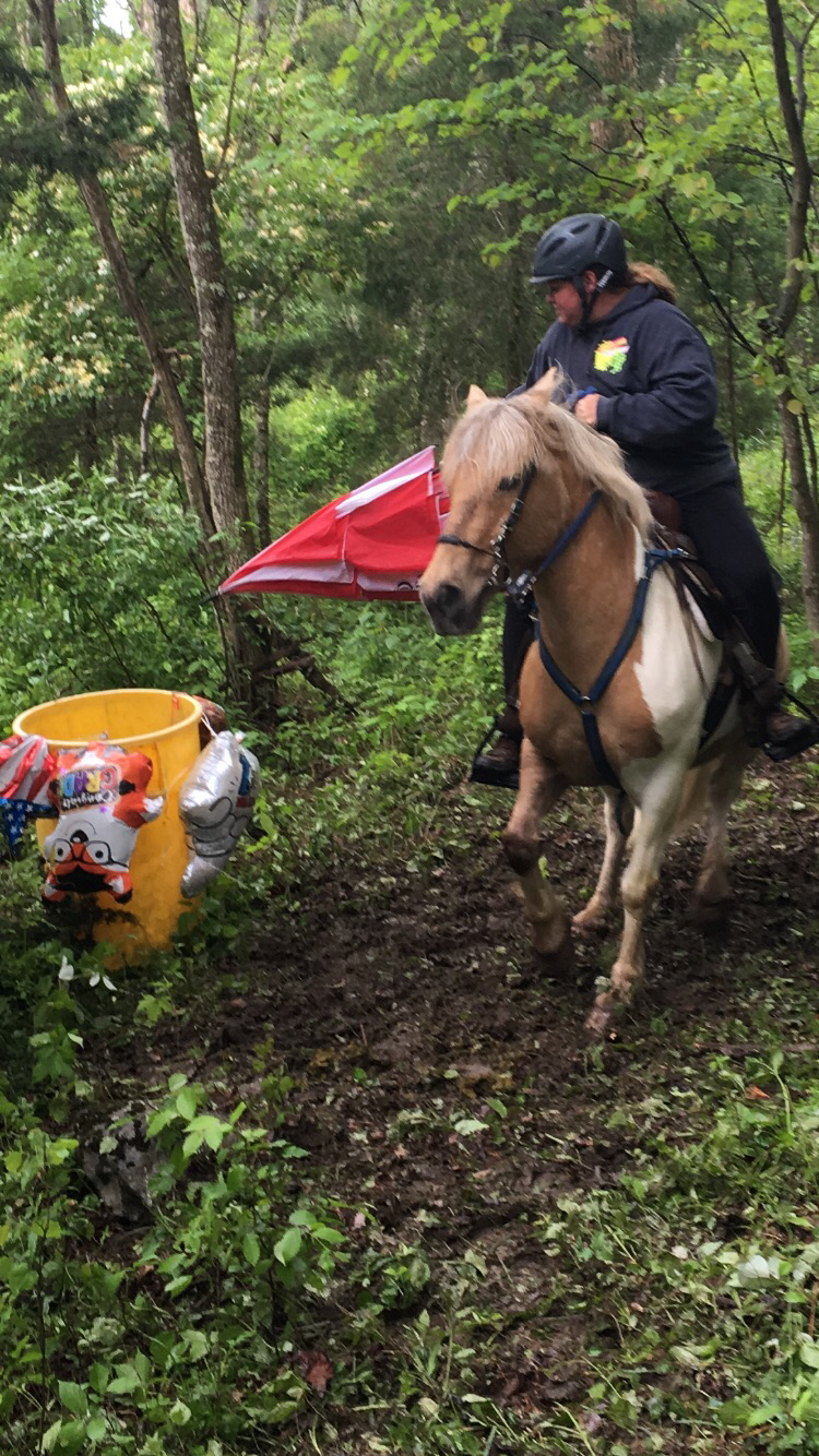 Andrea riding through the water obstacle. It had a blow up whale and also a kayak, complete with Elli’s dog Doc sitting in the kayak. That part made me so smiley.