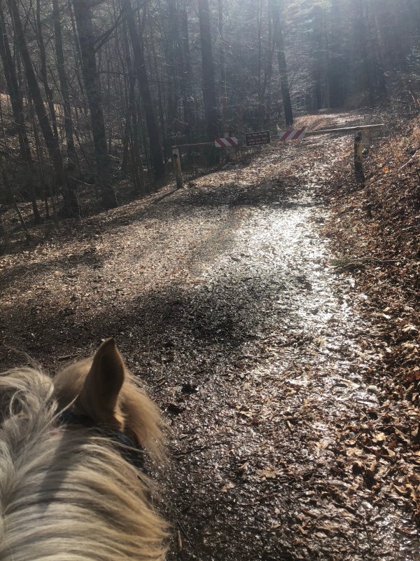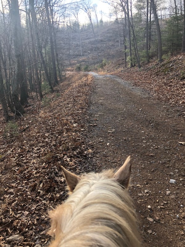 The ride starts out through the closed fire road gate, and on we go. Past lots of logged areas, up and up, on a slow incline for about the first two miles or so. This makes this area a bit of an annoyance for me to do a ride in and back out since the last two miles is a down hill ride. I dislike that level of down hill on Simon. He is so slow and not as surefooted as I would like and let’s his laziness peak. It takes some constant work to keep him moving at a decent pace. Which is not how I like to spend the last two miles of any ride.