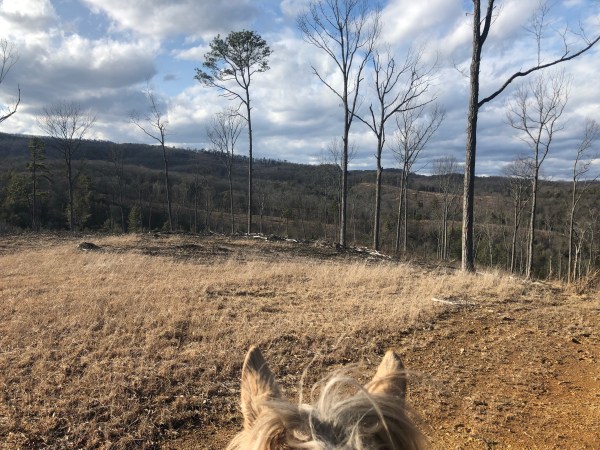 Today I was climbing down on foot with Simon and I slipped and rolled a little ways. I popped up from the roll and I swear Simon was was laughing at me *oh come on human, really?* It was comical. Once to the bottom, it’s an easy slip to the right into a more dominant trail, and just a few yards ahead across a creek and turn right. This trail has some downed trees, but nothing impassable. It dumps you out at a rocky creek type of bed, bare a bit right and across a creek, there is a clear crossing (this area is a bit messy since it floods on occasion and not so clear. After the rocky bed area bare right to the running creek, closer to the fence). After crossing the creek there is a path, sort of tough to see, it is parallel to the creek, forcing you to make a hard left to enter it. It takes up along the creek, then bares up and dumps you into the road, just a short shot left to the parking.