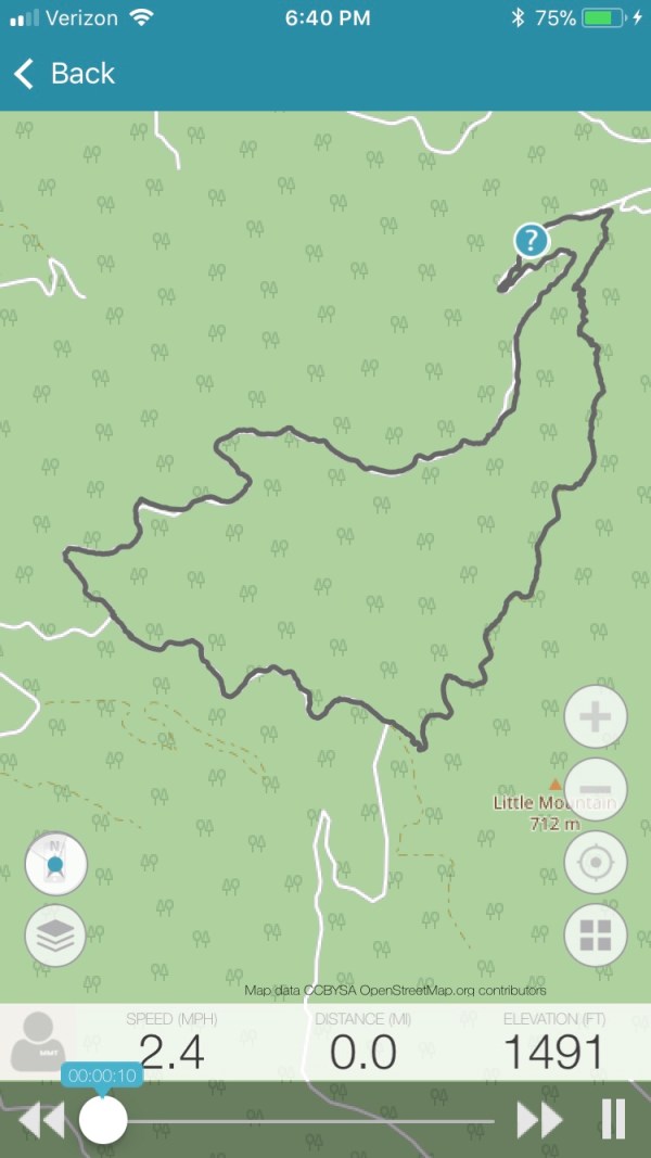 It’s a nice hack along until you come to a an opening with three split offs in front of you. Choosing left makes for this loop. None of these have road markers or any designations displayed.