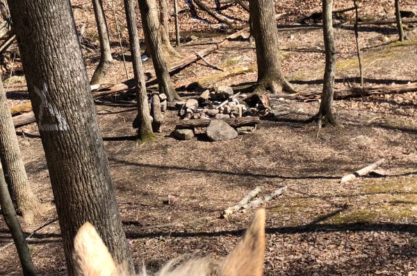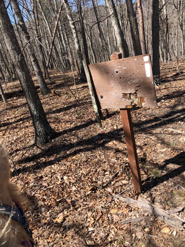 So back past the sign, onto white blaze 410, to where the pile of branches blocked the trail. I hopped over those and cantered up the path and it ended very quickly in a clearing. Nothing special.