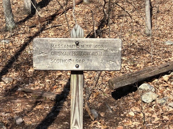 At one point there is a clear trail branching off to the left, with s small pile of branches in front of it. We stayed straight/right and kept with the white blaze.
