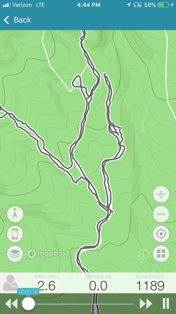 In the back of the circle there was a double trail and I checked them both out. They sort of both ended but not hard. When I looked at the tracker later it looks like one met up with the trail I was on earlier and I think I remember seeing a spot that was a poor looking trail. I bet that was where it connected.