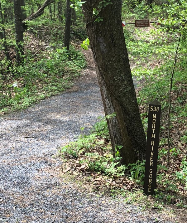 We eventually popped out by the North River Camp Ground, made a left behind it and then turned left onto the fire road, closed gate, 425 Hankey Mountain.